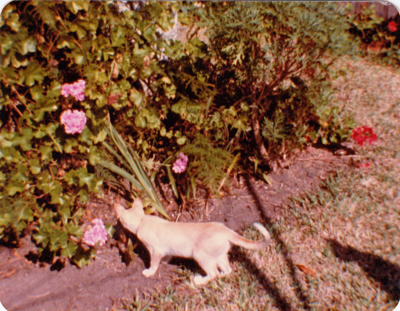 Paul wanted to get a dog. Sasha had stayed with his mother as had Macarra. I really didn’t want a dog at this point but I agreed to a cat. To make it easier not to have a dog we decided that a cat with dog-like behaviour was the way to go and decided on a Burmese. After perusing the advertisements in the paper we visited a litter and chose a sandy orange kitten. We did comment to the woman selling that the cat sounded like she was having trouble breathing but she told us this was quite normal in Burmese kittens and would stop as she got older. Not knowing better we believed her. We bought her and took her home; the noise of her breathing giving her name, Snuffles.