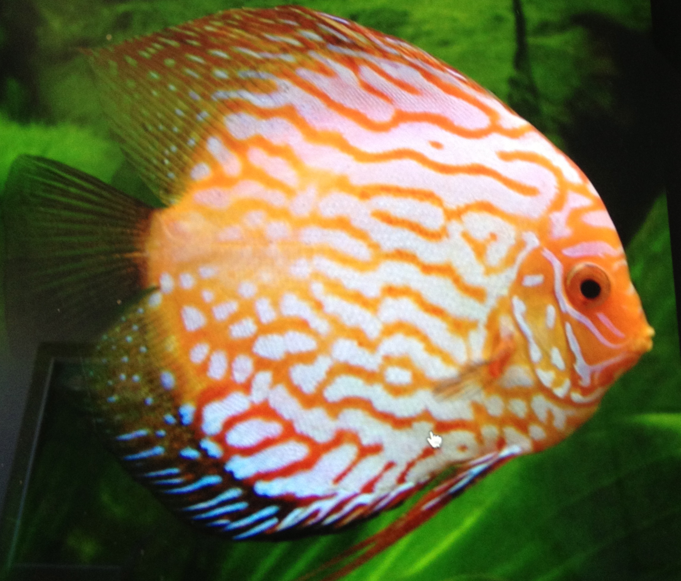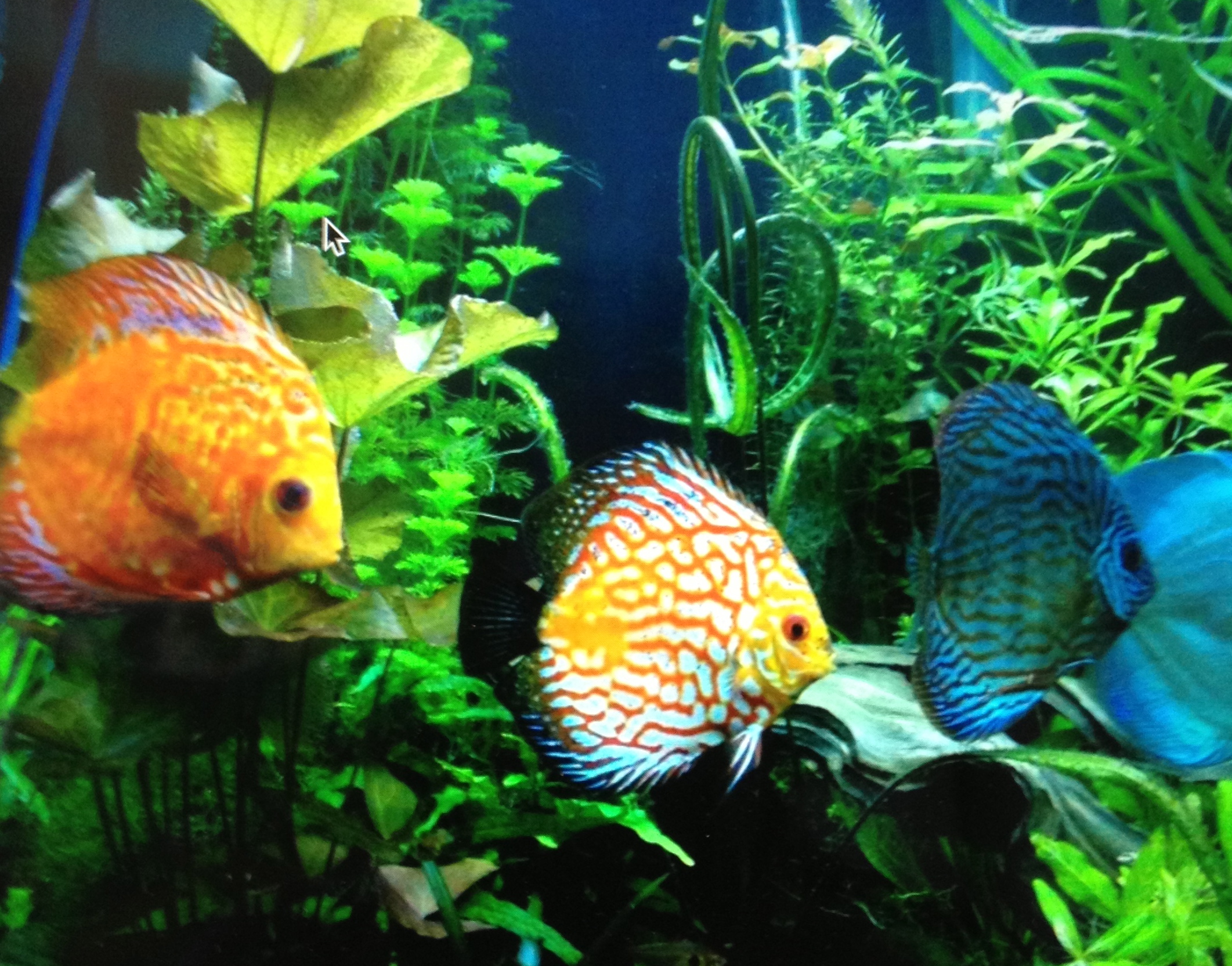 The solution: put another 6 foot tank in the bedroom. This housed the angel fish and we added to this tank five discus, a disc shaped cichlid of extreme beauty.