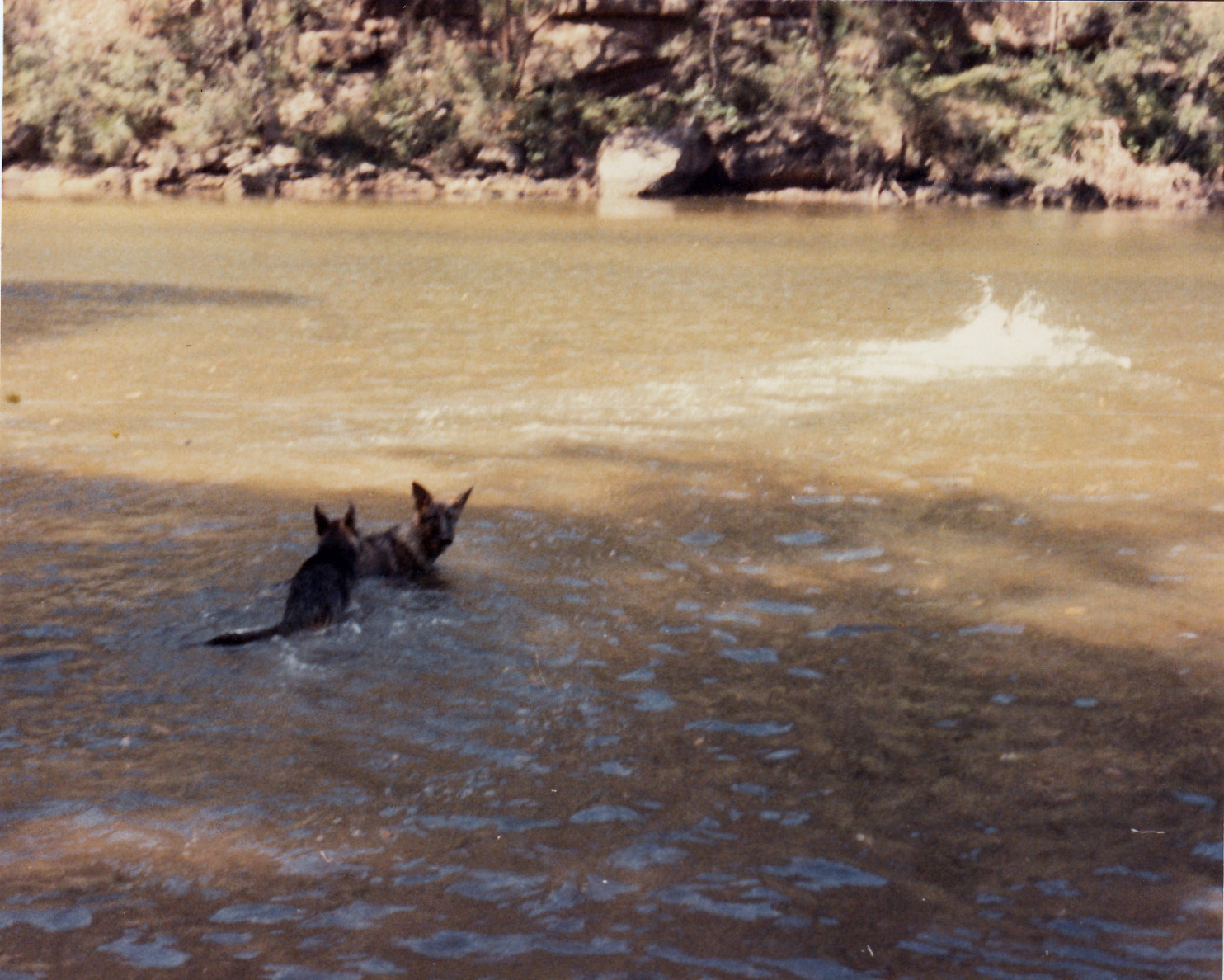 The other person we did see was Paul’s brother and we often took the dogs to Windy Banks, a good nine kilometre walk. Downhill was easy and the dogs enjoyed a swim at the bottom. Coming up tested the lungs but the dogs loved it.