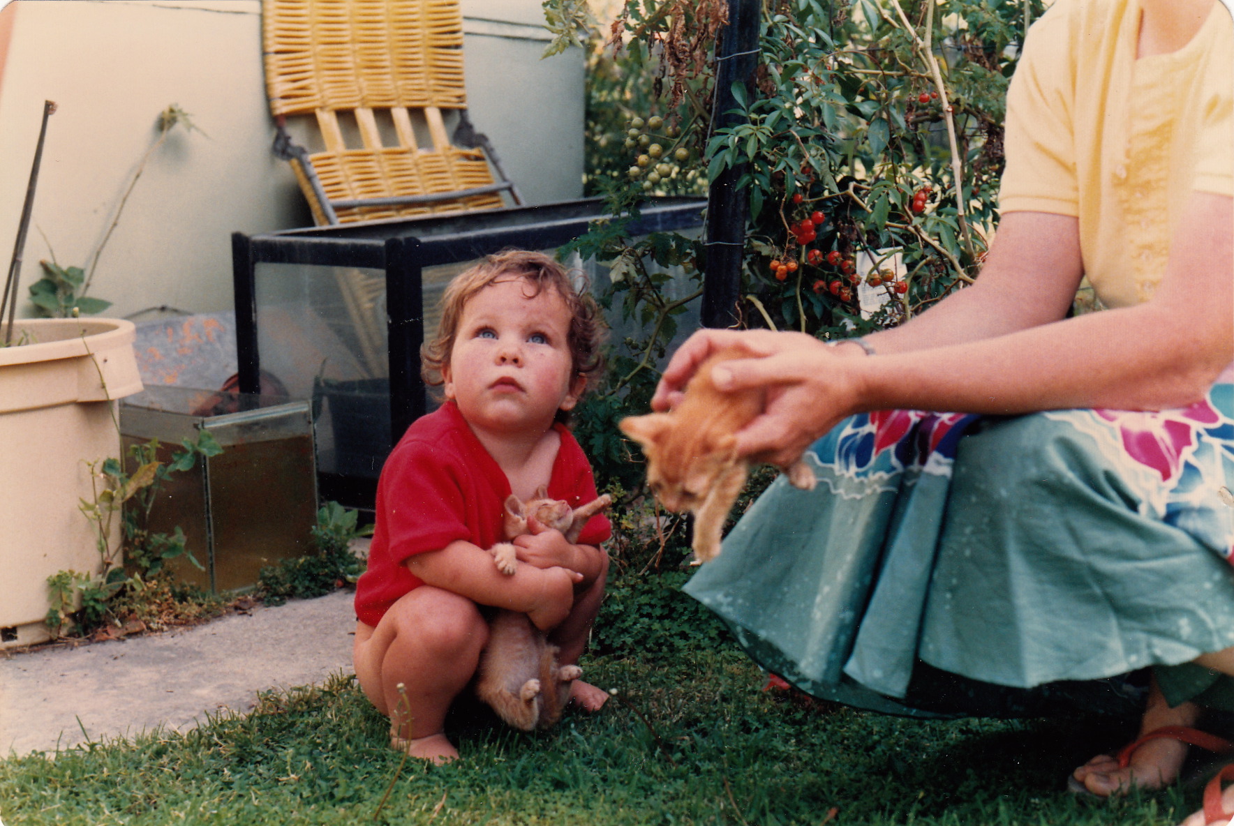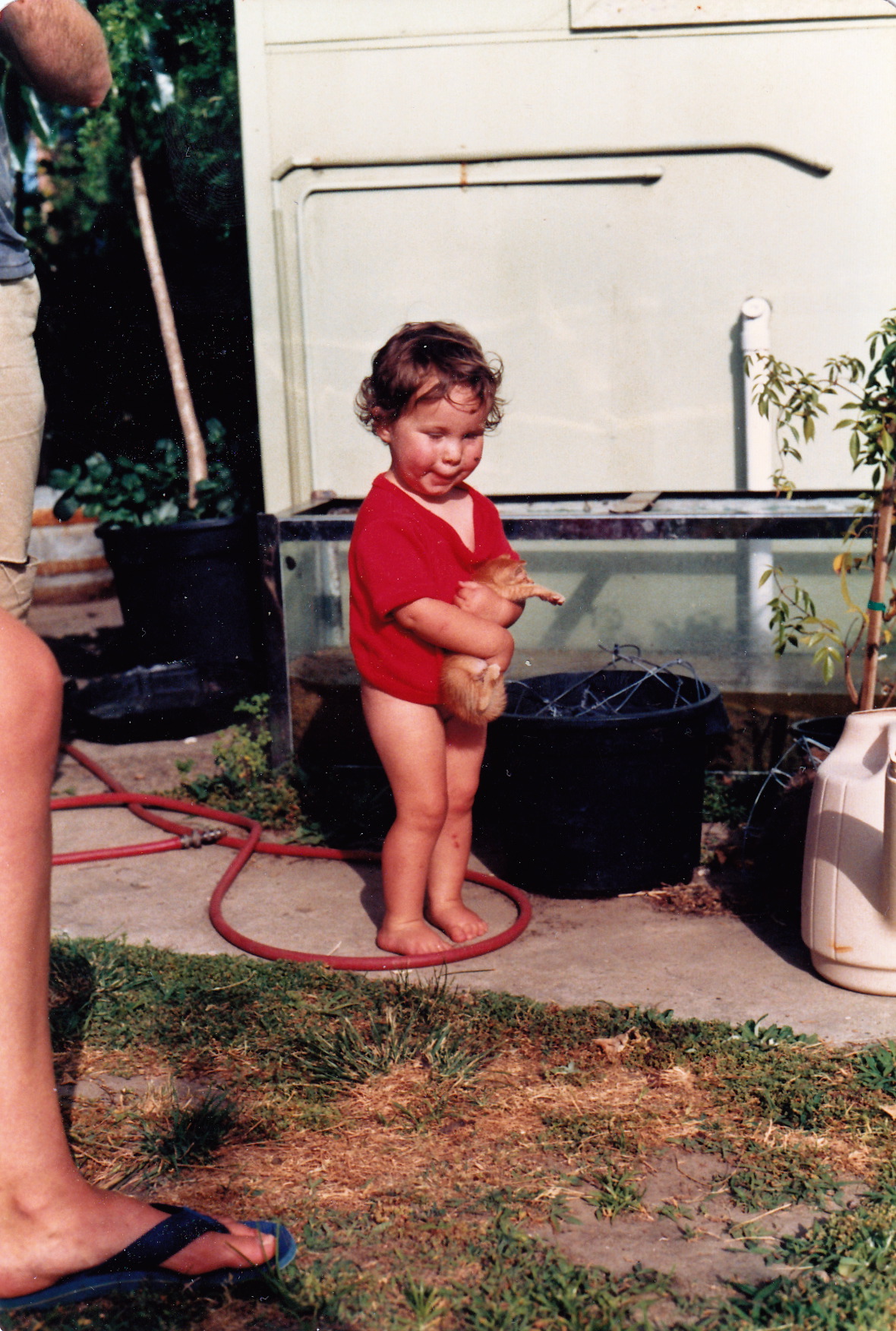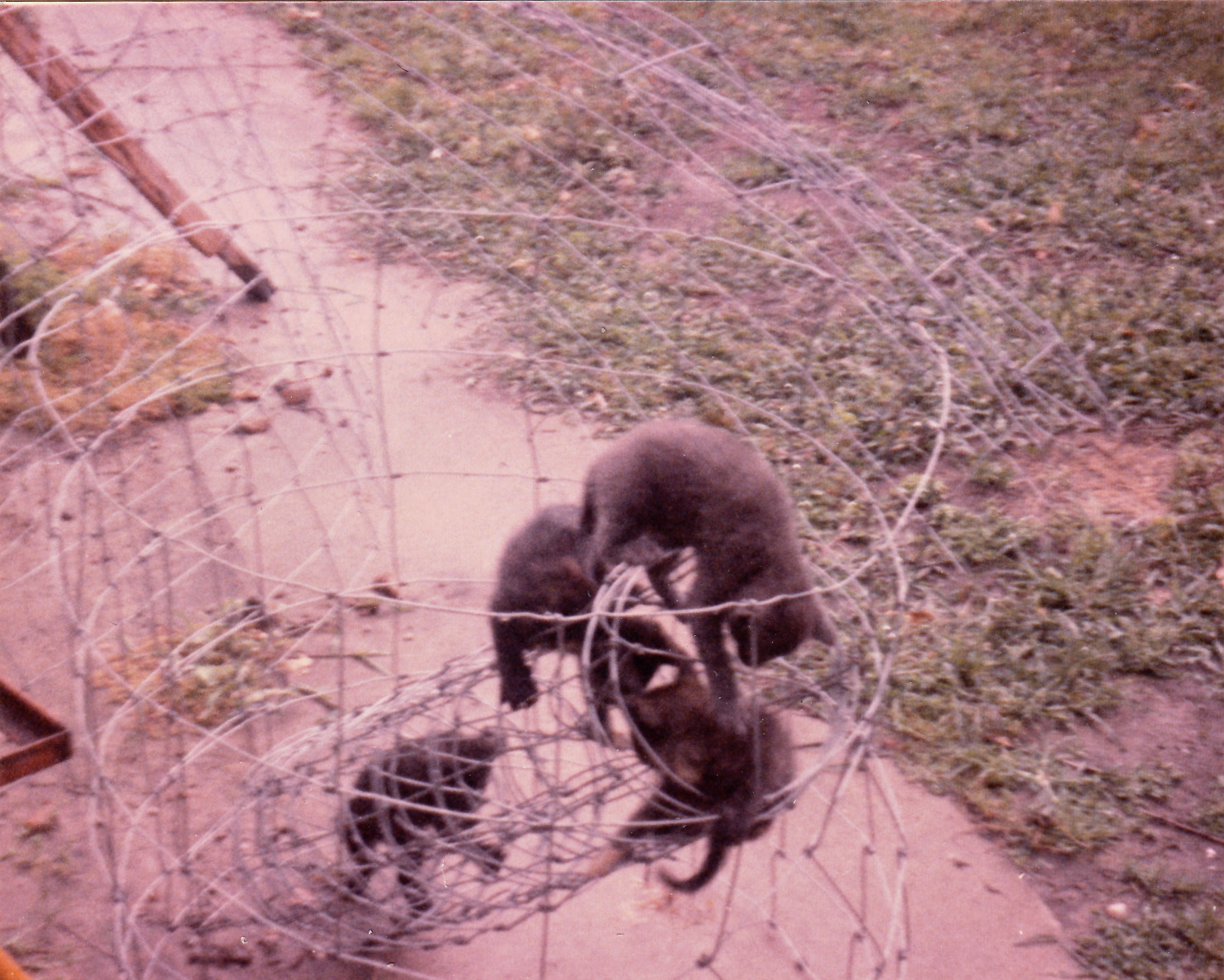 With some support of the girls, I made the effort to leave. He promised to change and I returned just in time to see the kittens at a very young age. Snuffles gave birth first, followed a few days later by Kimberly. They were good mothers and carried their babies from where they had given birth into the garage where they hid them behind the fish tanks. As they grew older they started to venture outside to play.