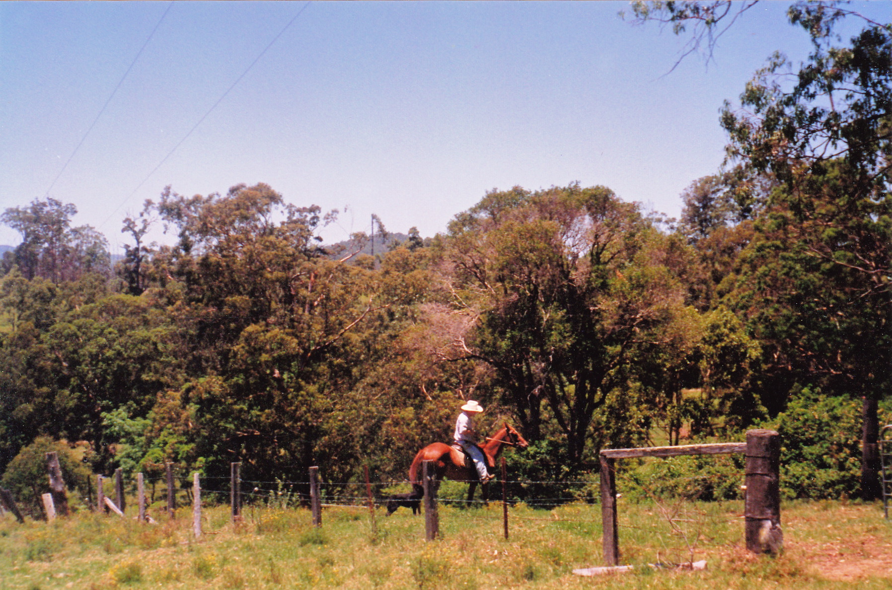 IMG_0031It was time to sell the male calves and Darrell organised his son to help him round them up. They arrived early in the morning on their horses with several kelpies at their heels. From the house verandah we watched them work. Whistling commands to the dogs they surrounded the cows into a bunch and with more whistles the dogs somehow knew which beast they were to cut from the mob. Once separated, the steers walked,  guided by the dogs, up the road to the yards at Darrell’s daughter’s place. Here they were yarded and waited, with a mob of other cattle, for the truck to transport them to market.