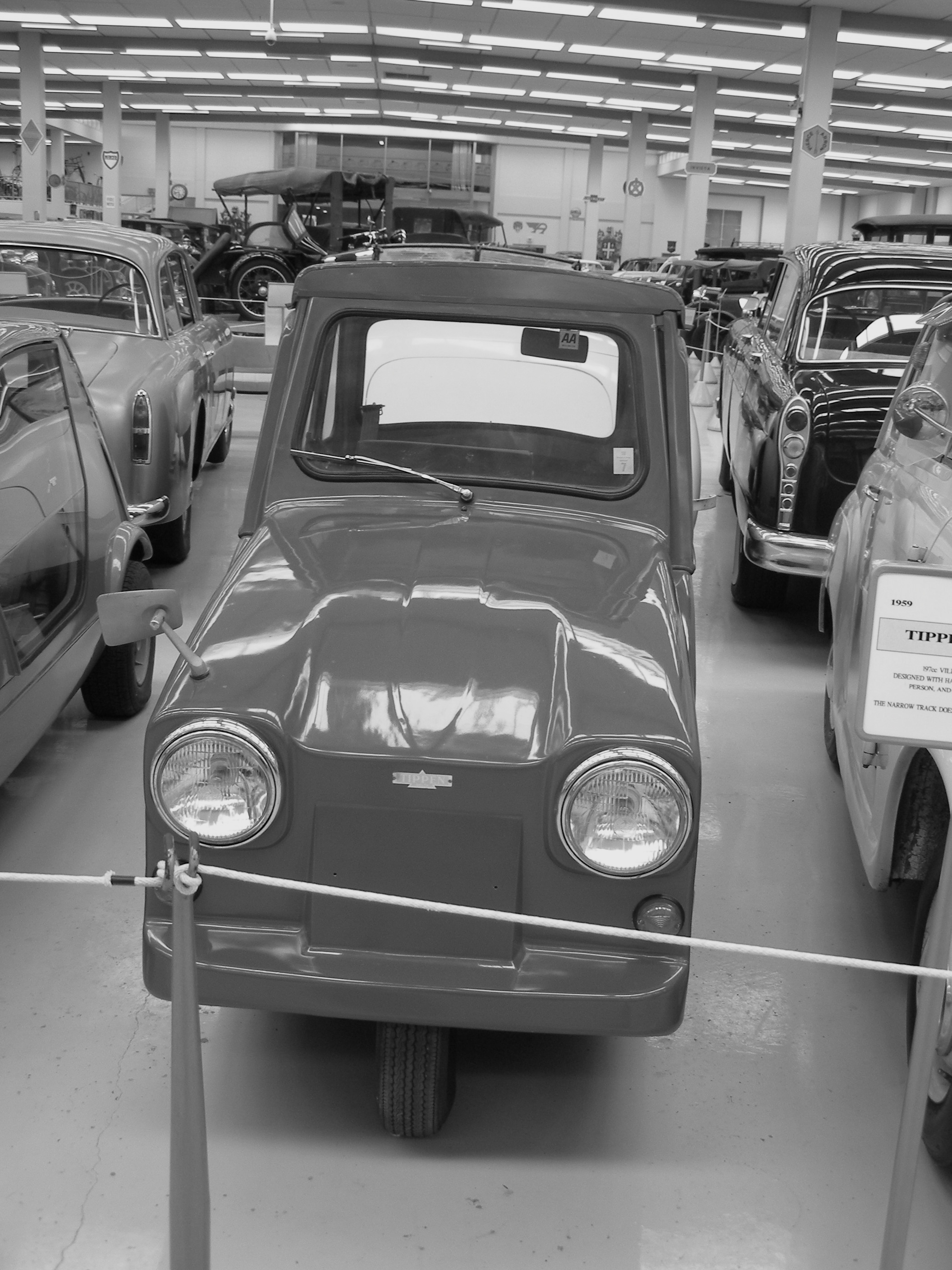 The museum collection was began by Len Southward in 1956 and his collection displayed in the purpose-built museum which opened to the public in 1979. Although there was a huge range of cars we looked in vain for my husband’s first car, which he bought when 16 years old whilst he was still at school. It was the first Bond mini car which was a three-wheeled vehicle with no rear suspension. Powered by a motor cycle engine, it had no reverse gear so it did not require a car licence to operate it.