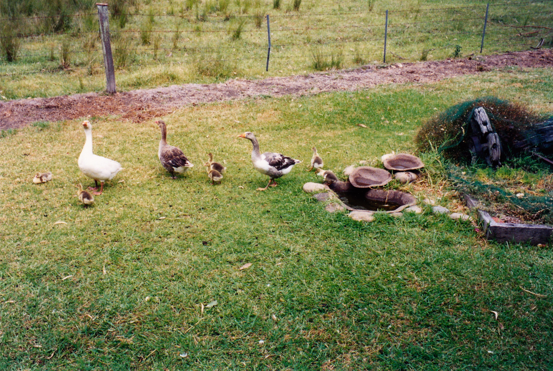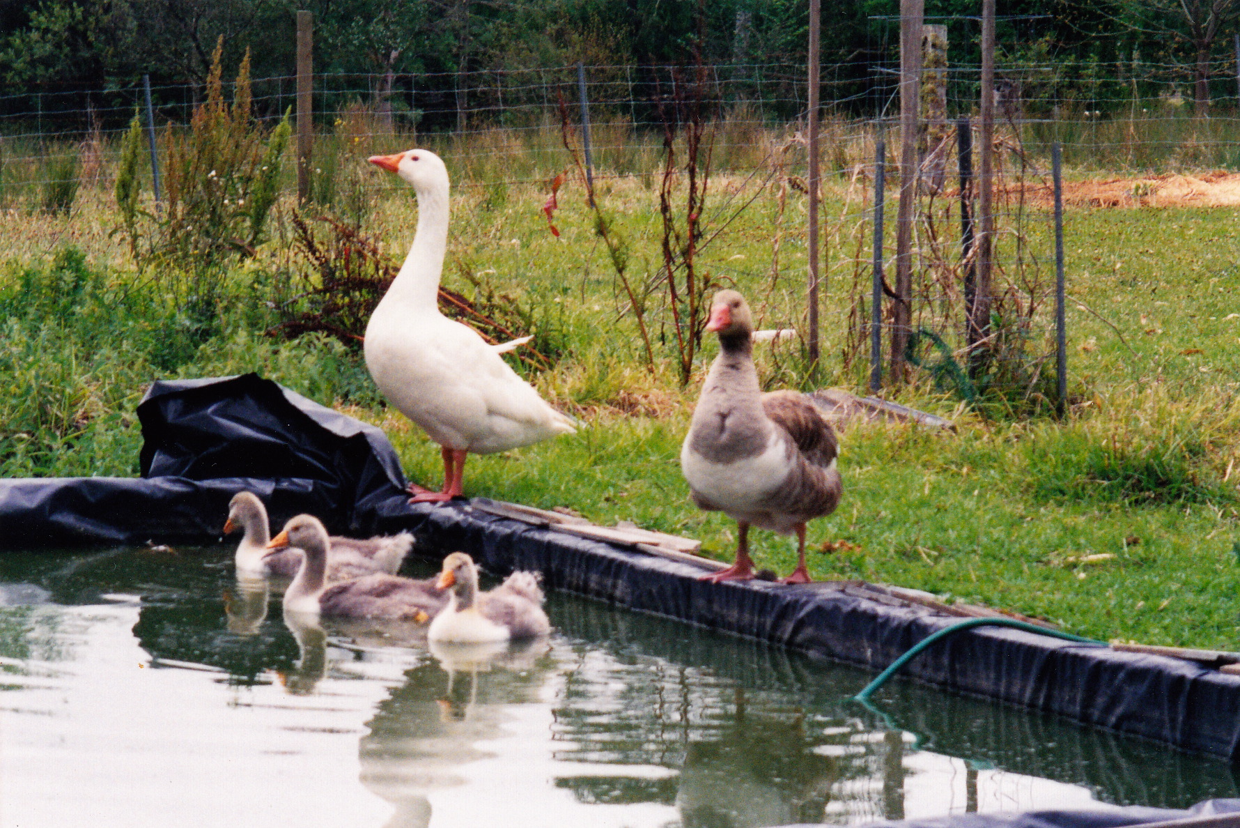 Geese are highly protective of their family. Both parents take an active part in the parenting and even a sister from an earlier hatching will make sure that no harm comes to her new brothers and sisters. Woe betide anyone entering this backyard.