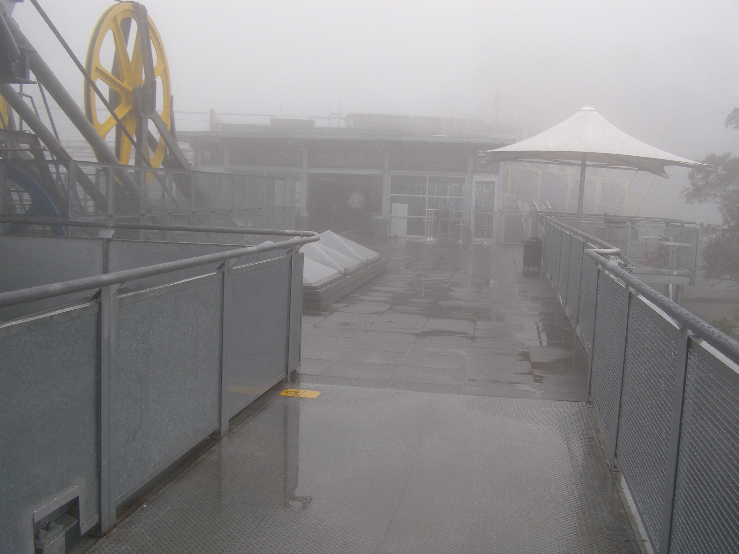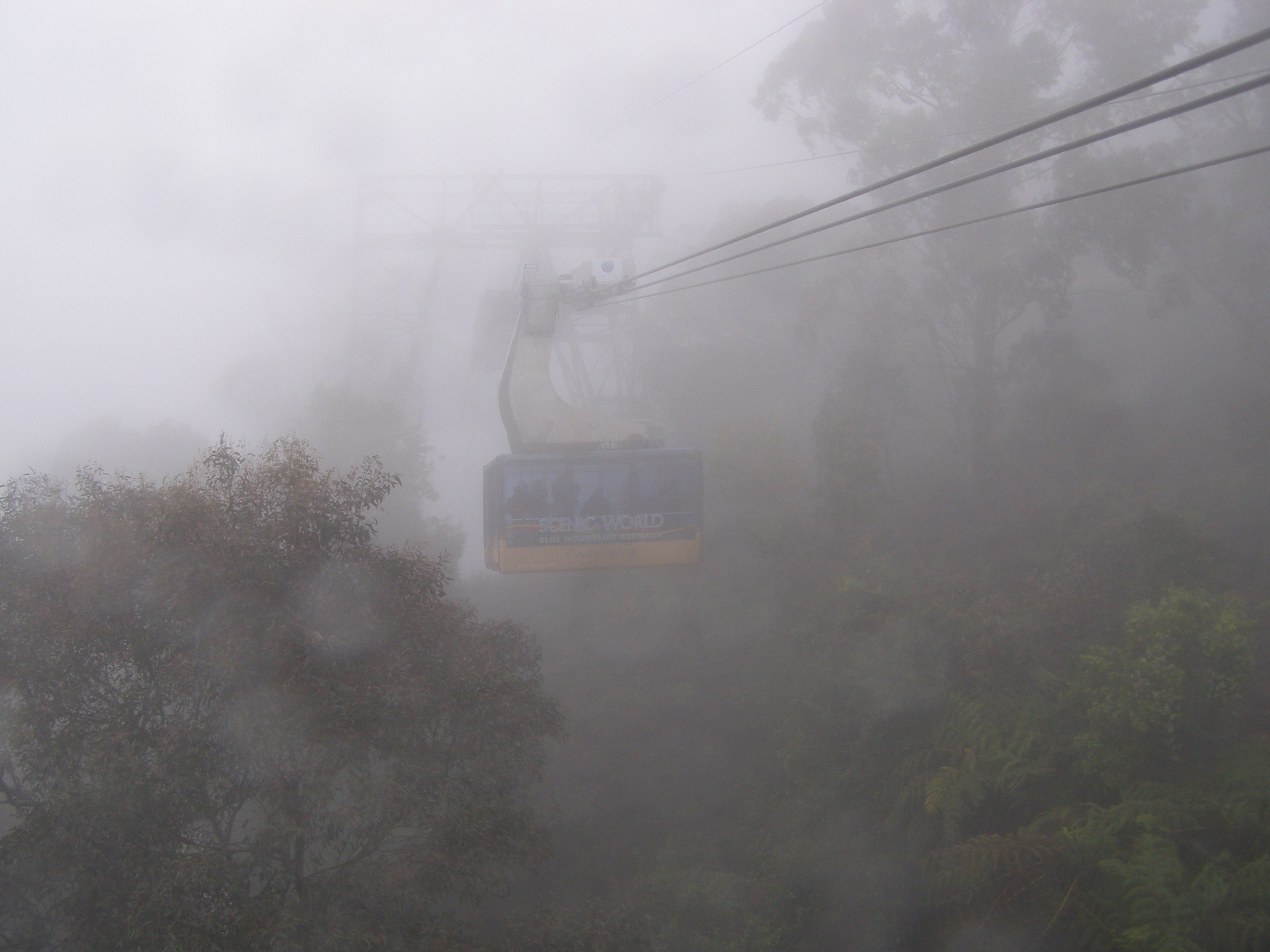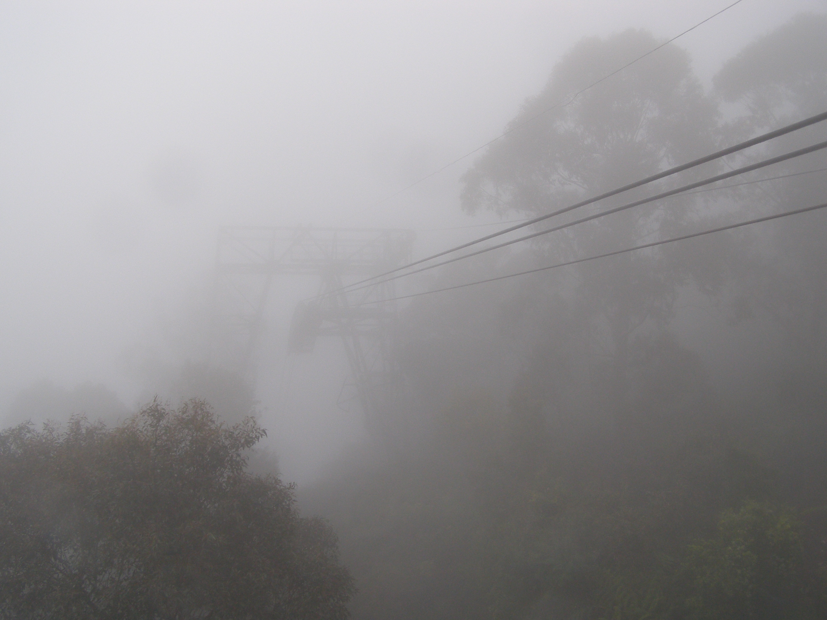 It was a sheer drop between two mountains. It was probably less frightening with the mist than without it as the cable car that went out has a mesh iron floor so you can look down into the forest below. To get down into the valley you use the giant stairway which descends down about 1000 ft via more than 800 stairs. By the time you reach the bottom your legs are wobbling jelly.
