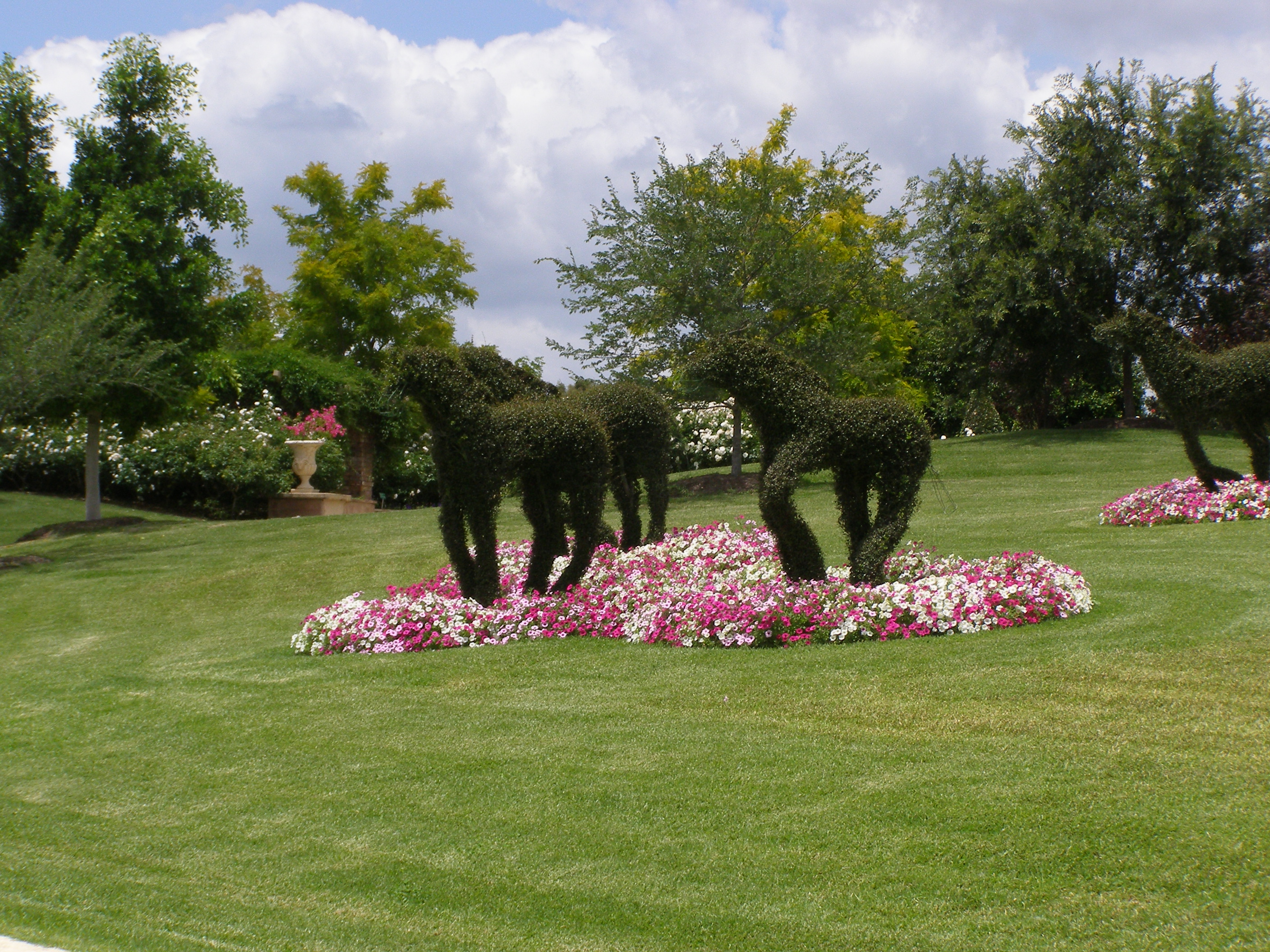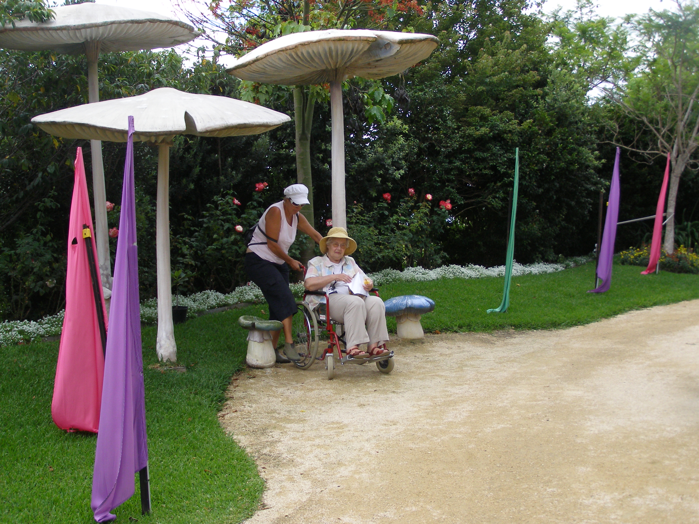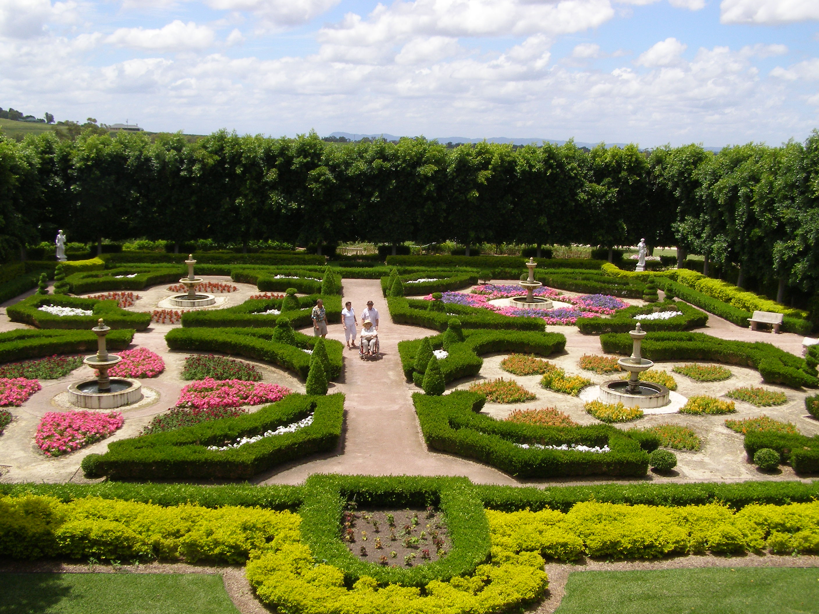 These gardens are the largest gardens in the southern hemisphere and are privately owned by Bill and Imelda Roche. Their collectibles are scattered throughout the garden. The rose garden has thirteen bronze statues of Imelda and her twelve grandchildren.