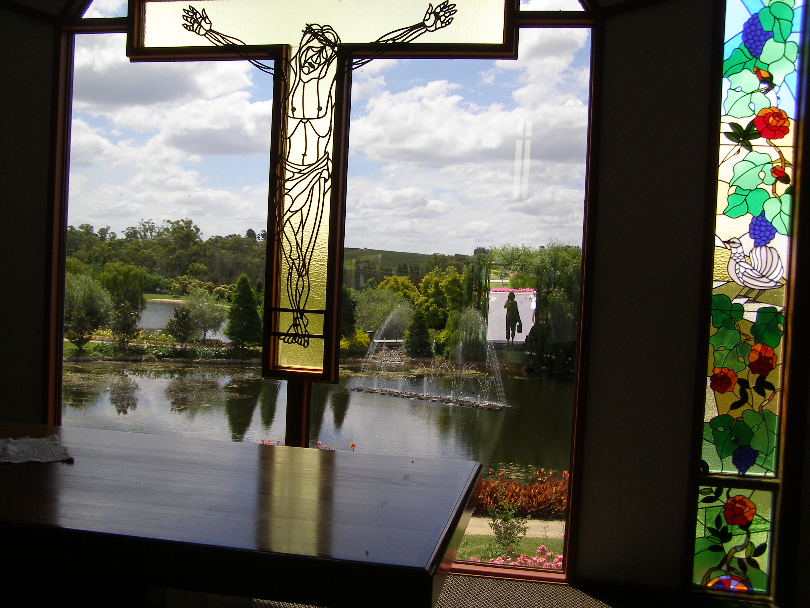 That is probably the best photo and the rest that have been taken inside technically horrendous but I really like them because the main cross appears to be out in the lake, there is another cross in the sky and there is a bizarre little person in a box with a suitcase looking like Dr Who about to be whisked off somewhere. It appeals to my odd sense of humour.