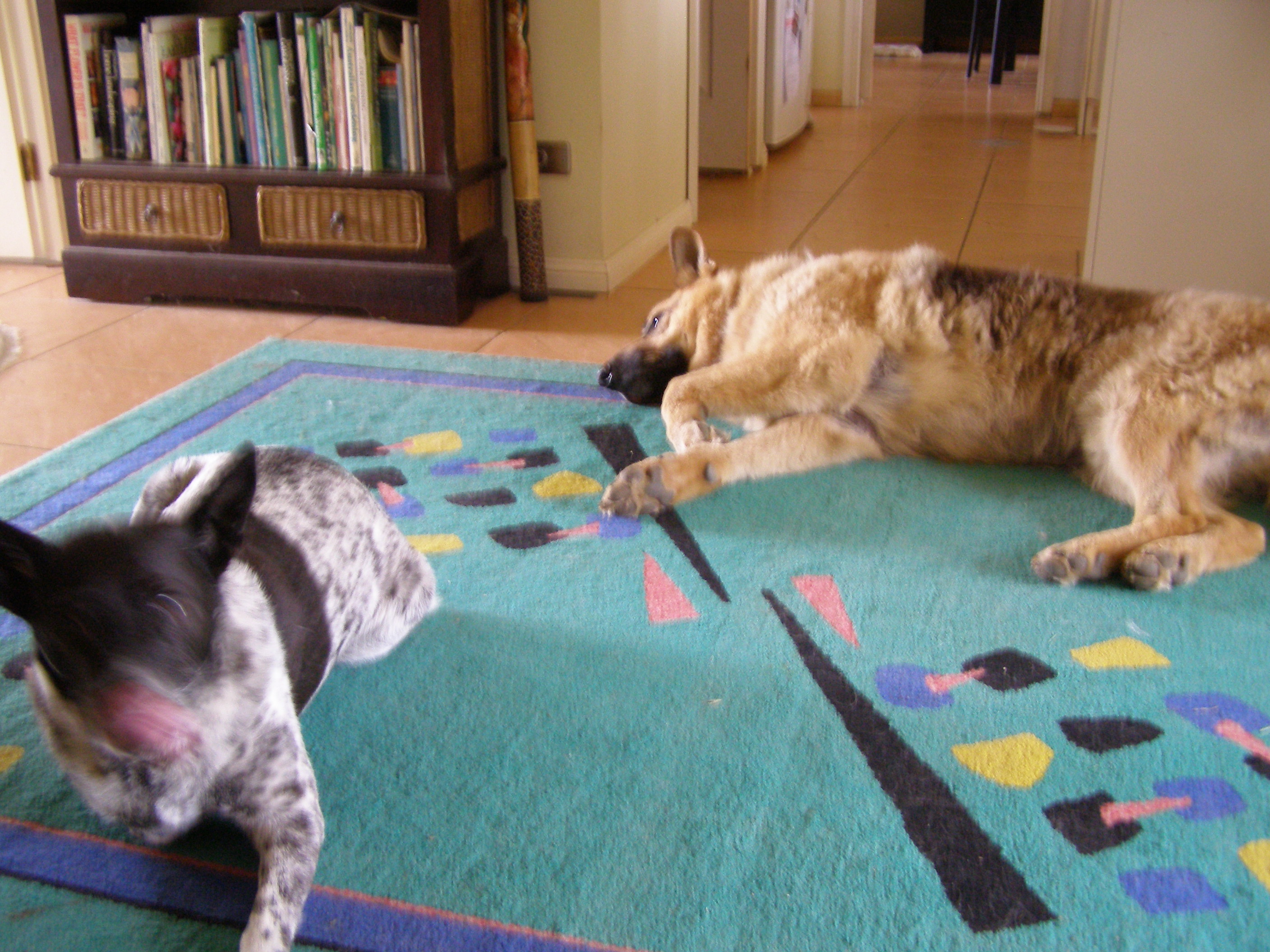 Although he was ready to act when he felt he was protecting us or his property (the car) he was really a soft gentle (I would normally say pussy cat but given that our cat was feisty) dog. Lavinia our cleaner had a blue heeler cattle dog. It had fallen out of her son’s car and dragged along by its lead for a while, resulting in severe injuries to its front leg making it misshapen and unusable. Bundy used to hop around on three legs and our two dogs were petrified of him.