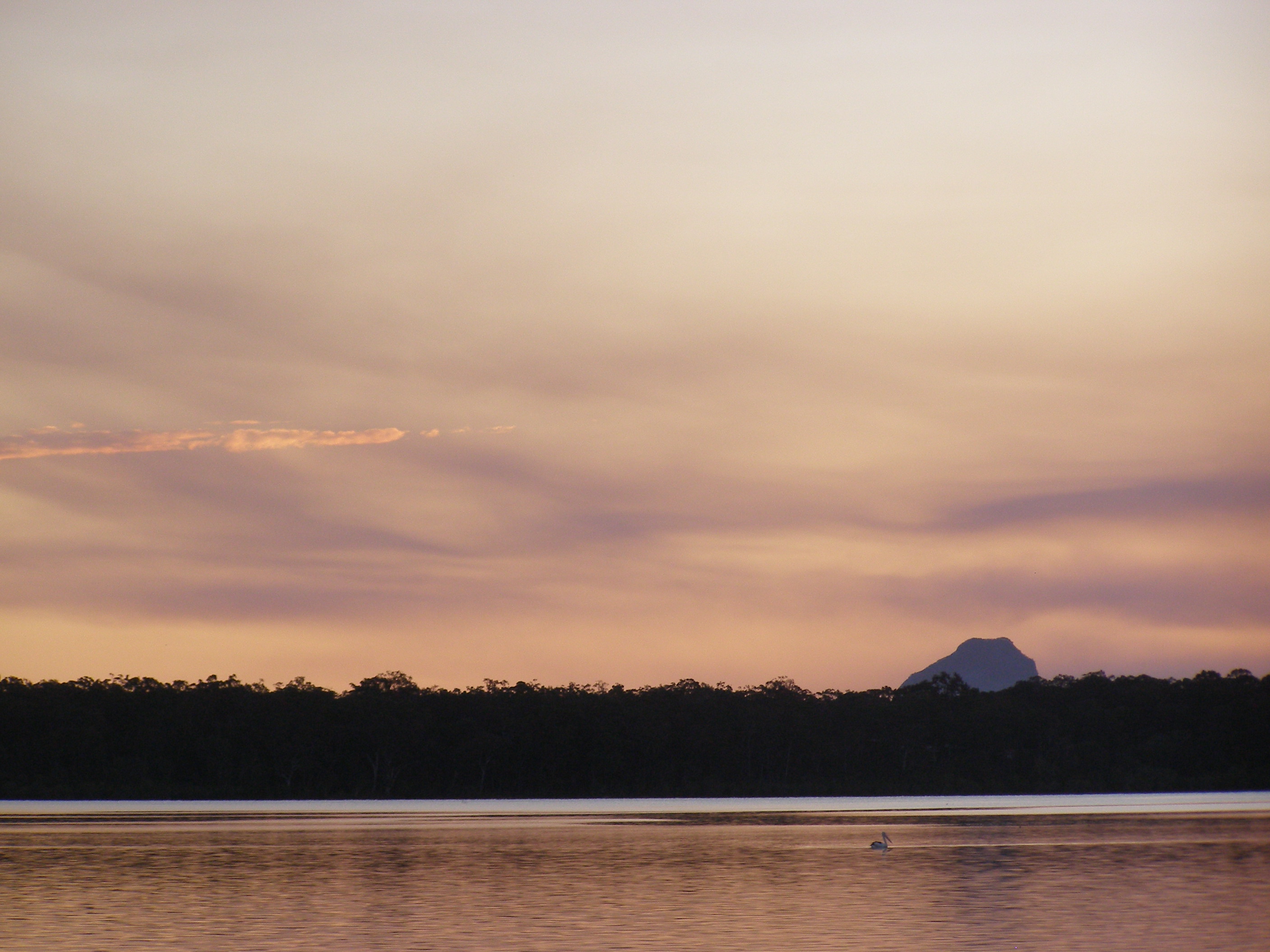 Beautiful colours … and I LOVE that solitary pelican. The outcropping behind is pretty unusual, eh, Irene ?