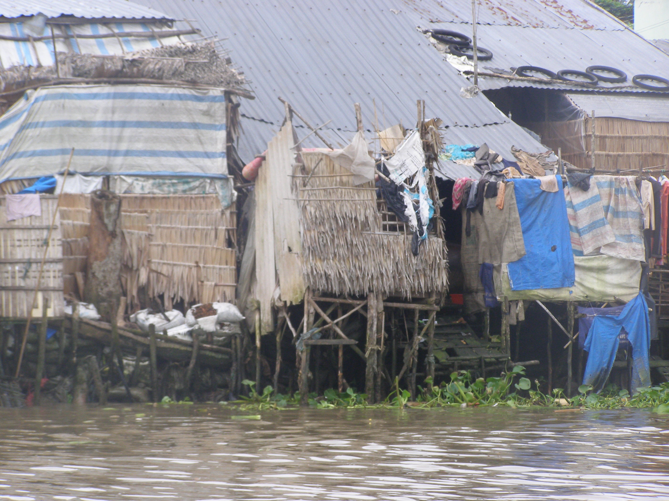 At least those living in the sampan are afloat its a tough life. Although their quarters are cramped we saw no evidence of frays (fights) although the clothing hanging had some evidence of fraying.
