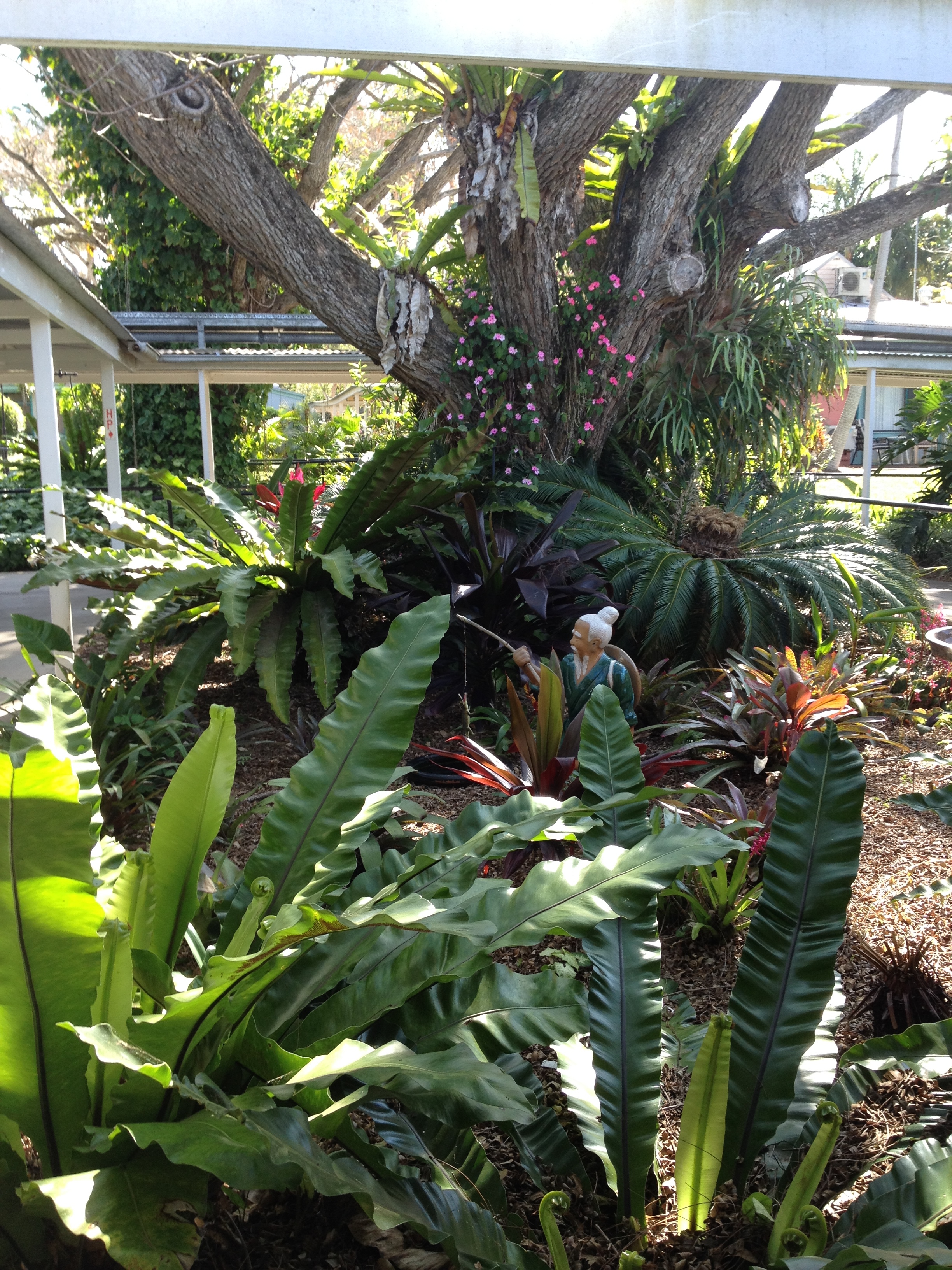 Those birdnest ferns are magnificent with the scattering of impatience climbing the trees, a beautiful touch. Yes, that would be a lovely place to spend one’s last days, if one needed to be cared for.