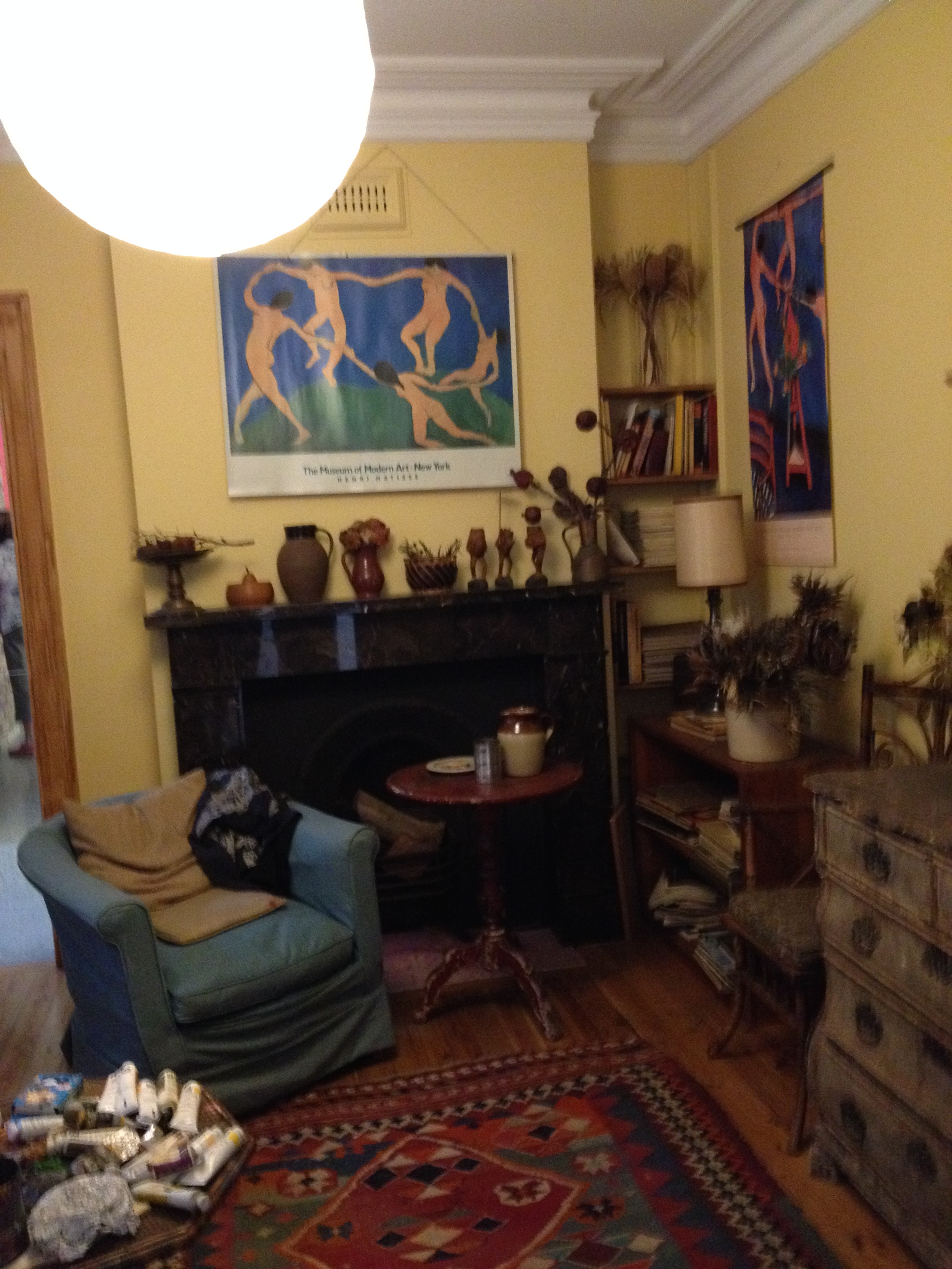 She bought the Duxford Street, Paddington cottage in 1964 initially living in two rooms. This became the backdrop for her painting. She particularly loved the yellow room as this was the room she and her one love Sam Hughes whom she met in 1973 lived until his death in 1982.
