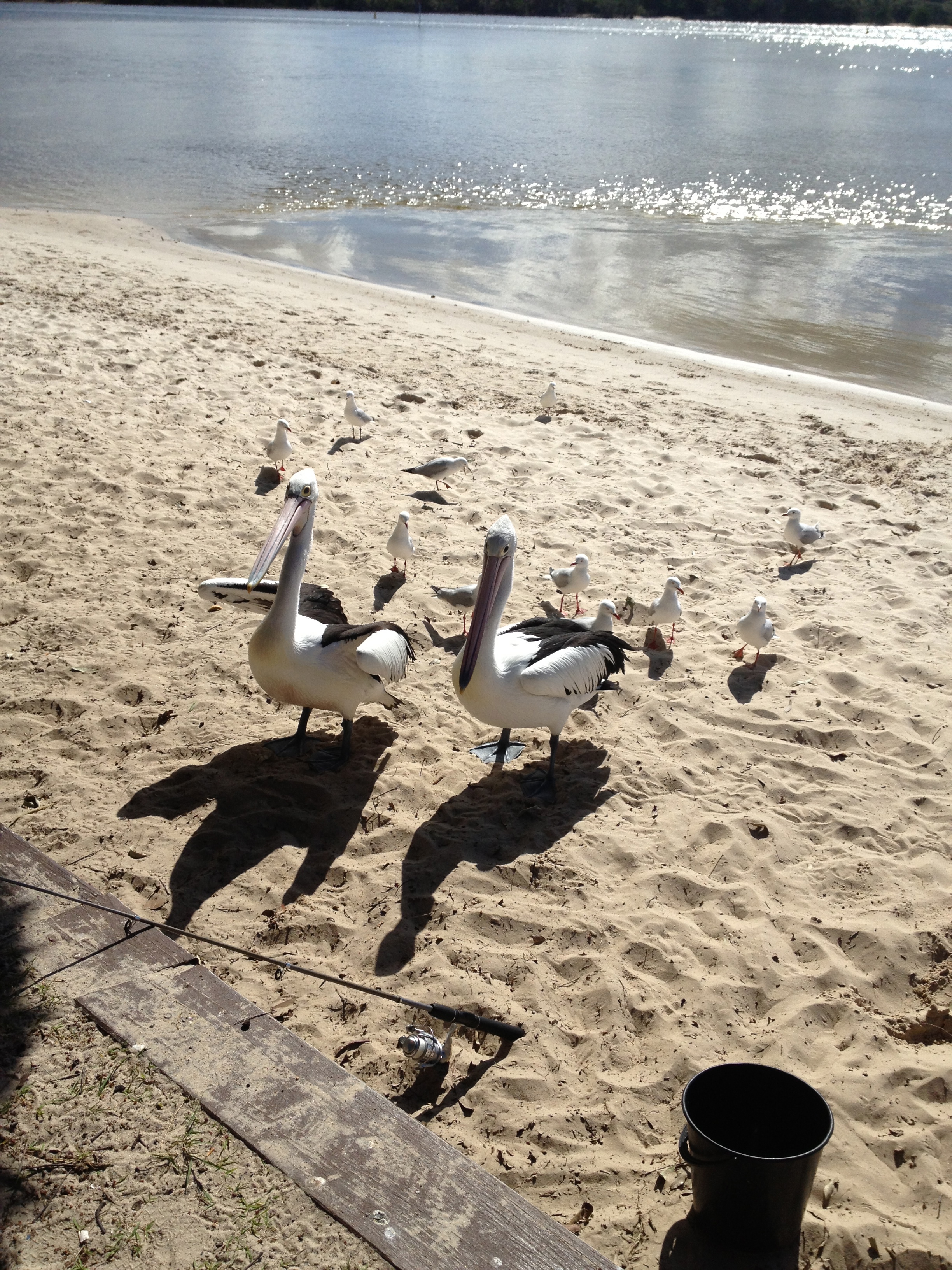 Yes they kind of get lost in the pelicans up front and centre. But a great catch as the birds wait to catch….