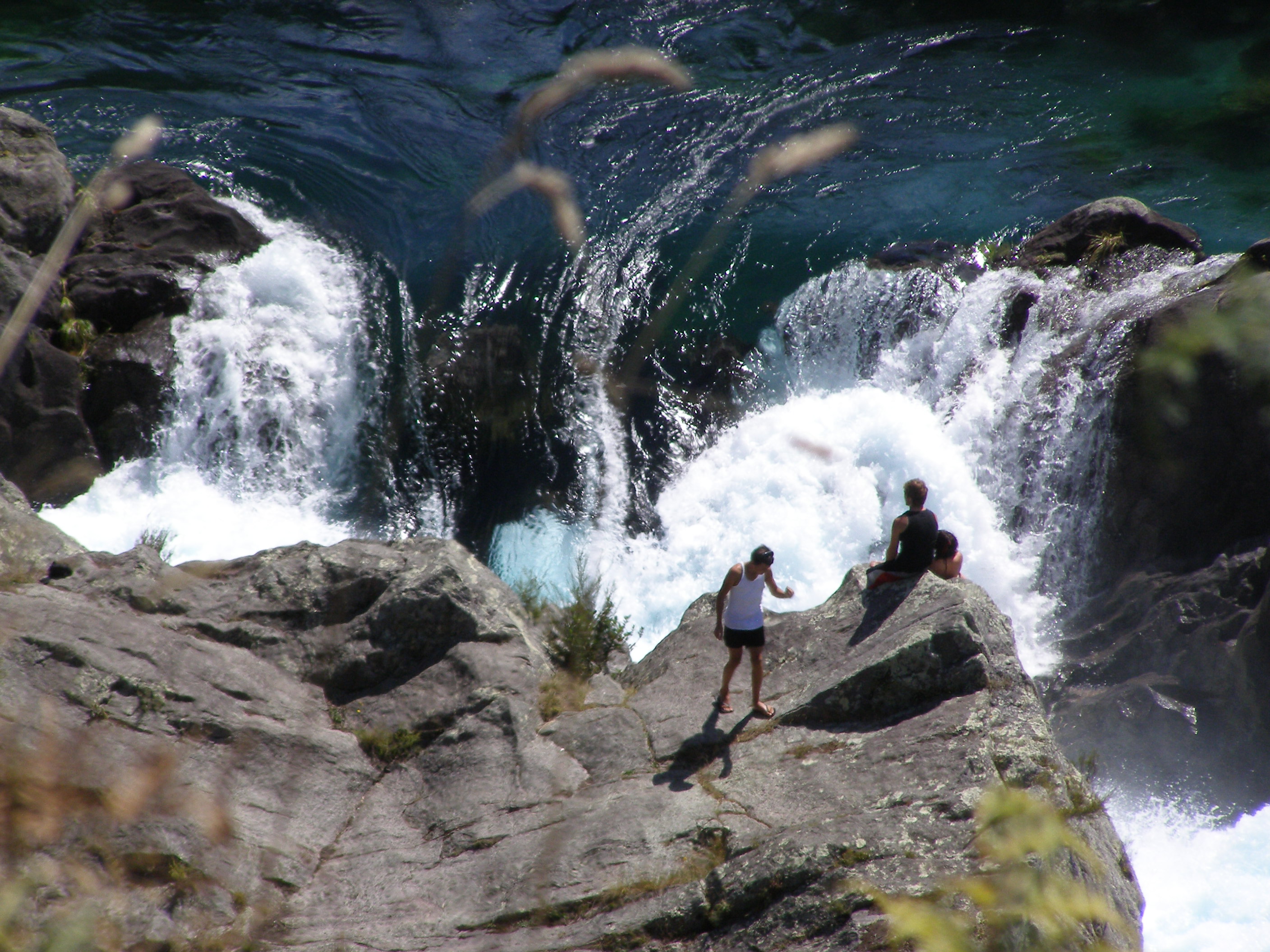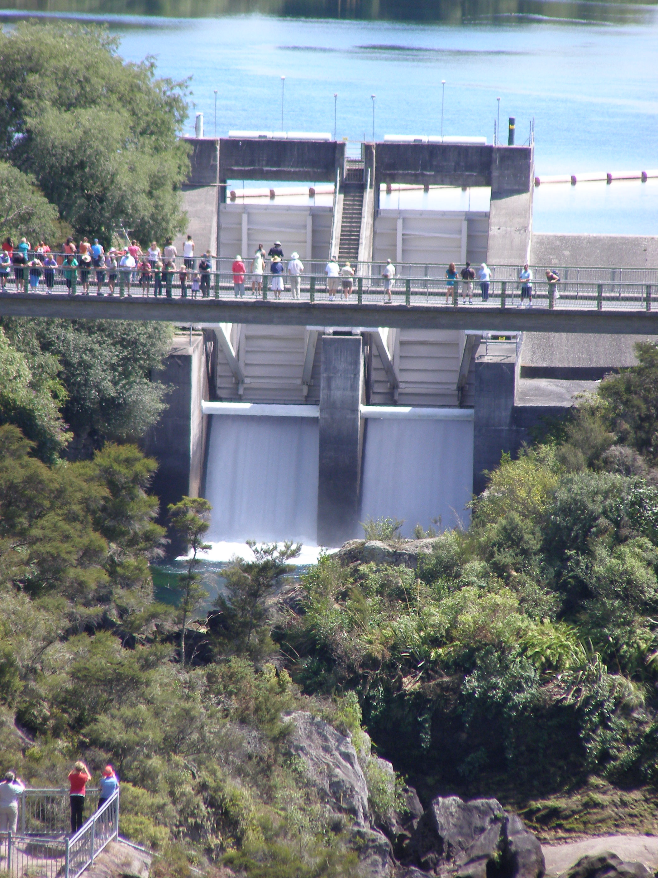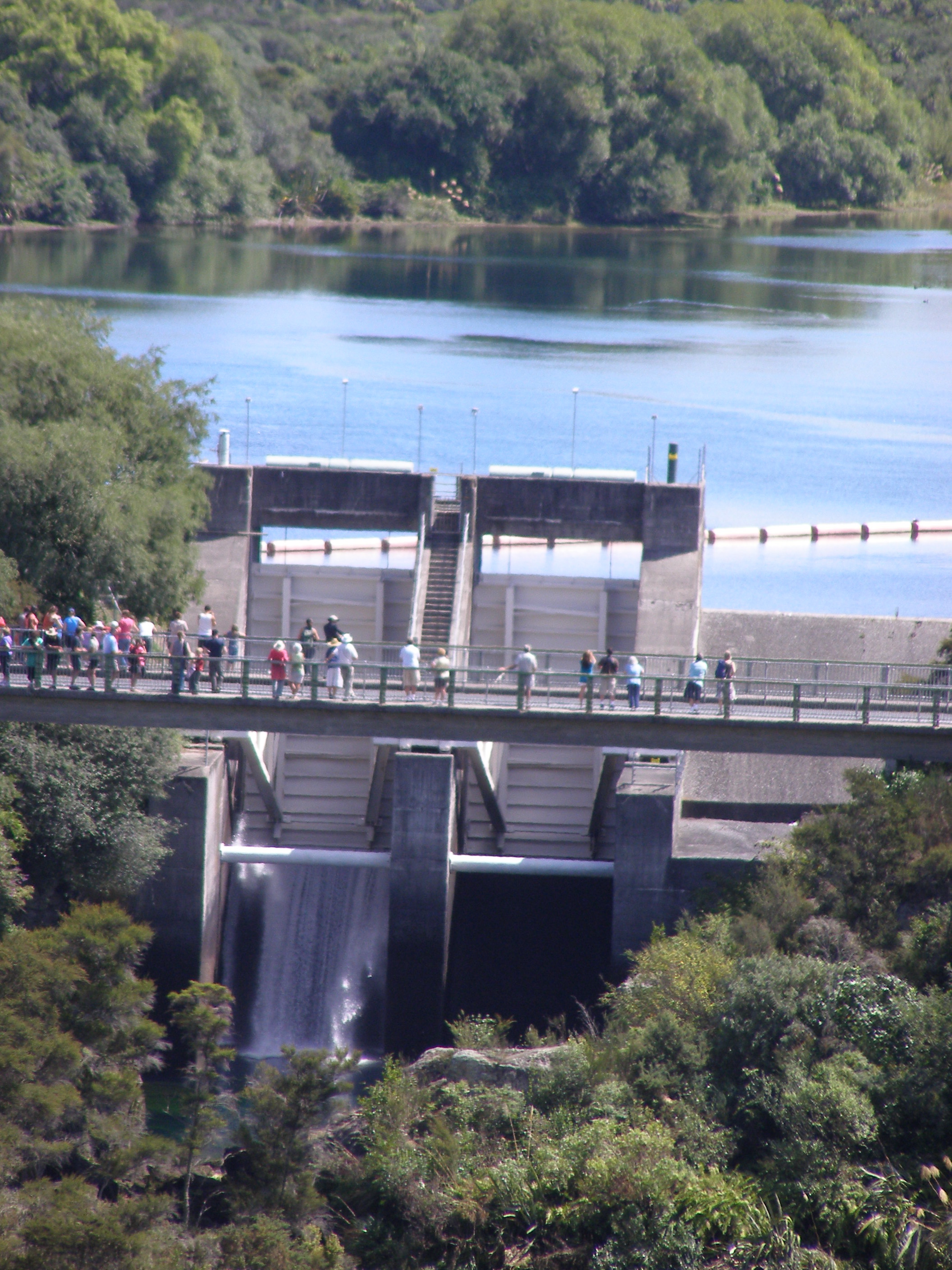 The dam is supplies water to one of the many hydro electric power stations and is opened four times a day to send 90,000 litres per SECOND, yes per second down the otherwise almost dry riverbed.