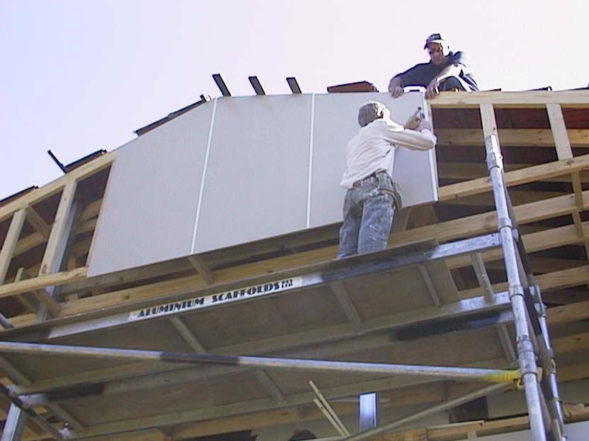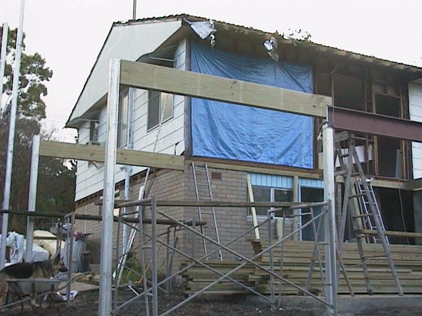 Carrying in the gyprock was hairy as it was a frosty winter morning and the ice made walking the plank slippery to say the least.