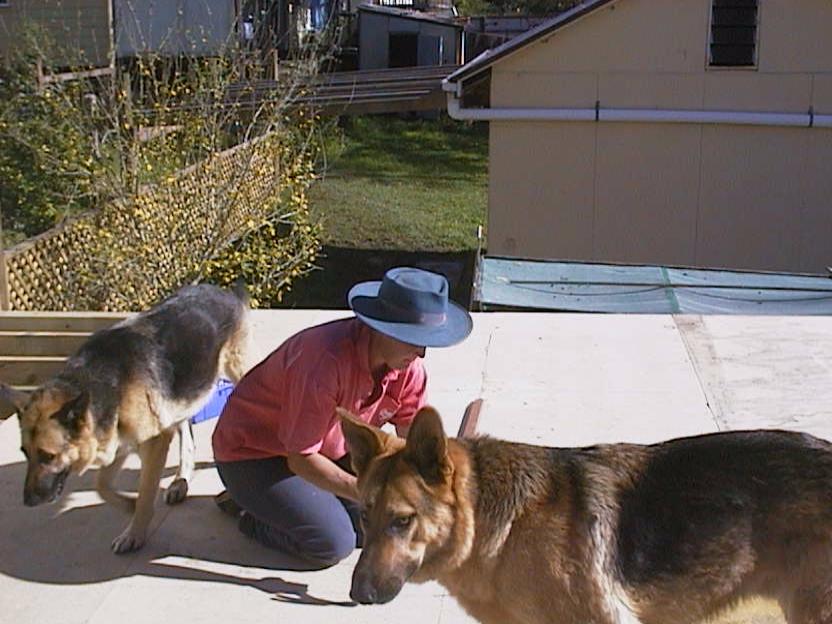 Mungo and Jerry my two faithful companions at the time liked to help as I had the back-breaking task of nailing the flooring.