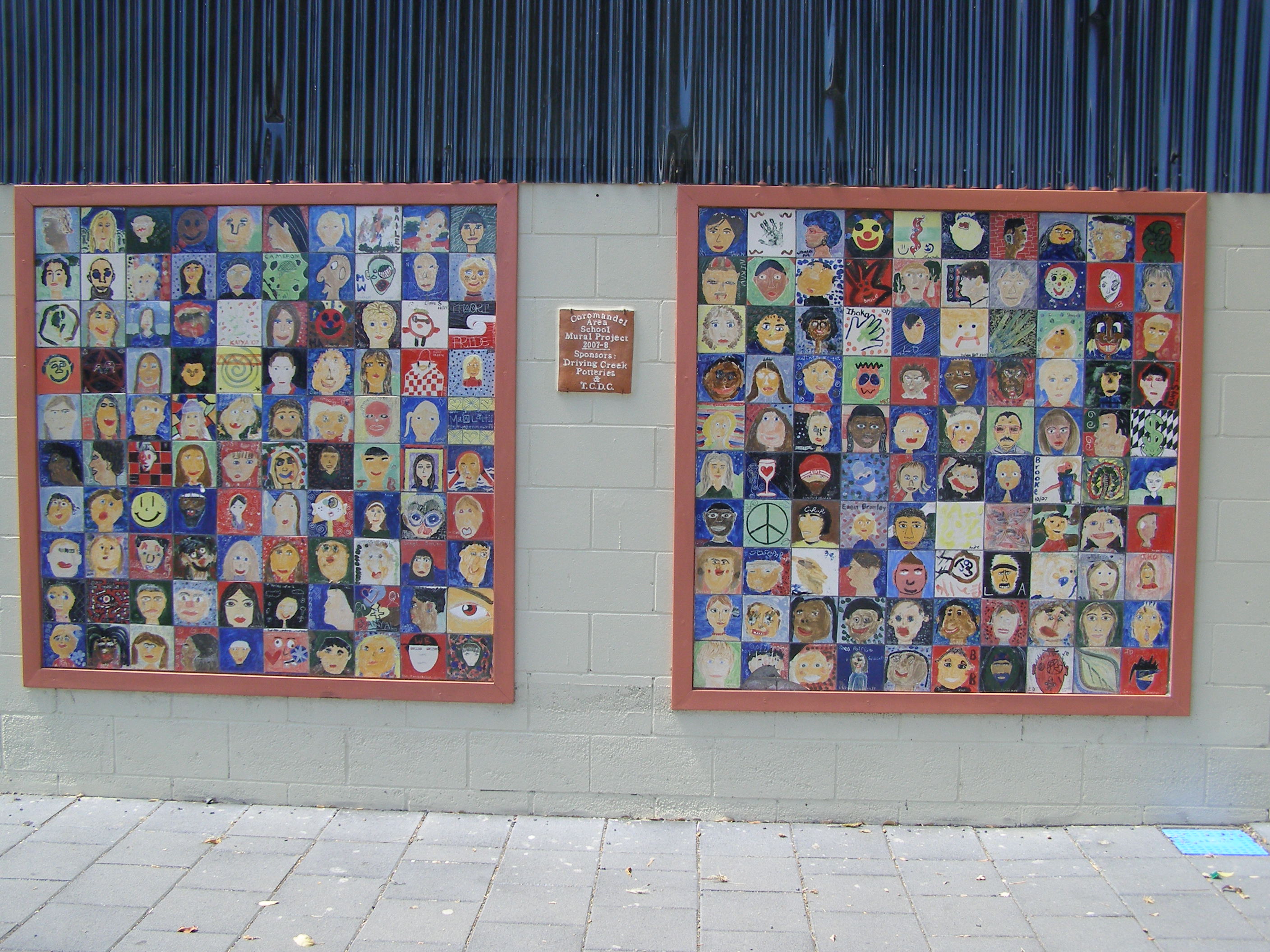 The first is in the Coramandel Peninsula in the North Island of New Zealand. This joint community project created a mosaic of self-portraits of the school children in the area or other art work as done by the kids. It was placed on the wall of the public toilets and certainly beautified this spot.