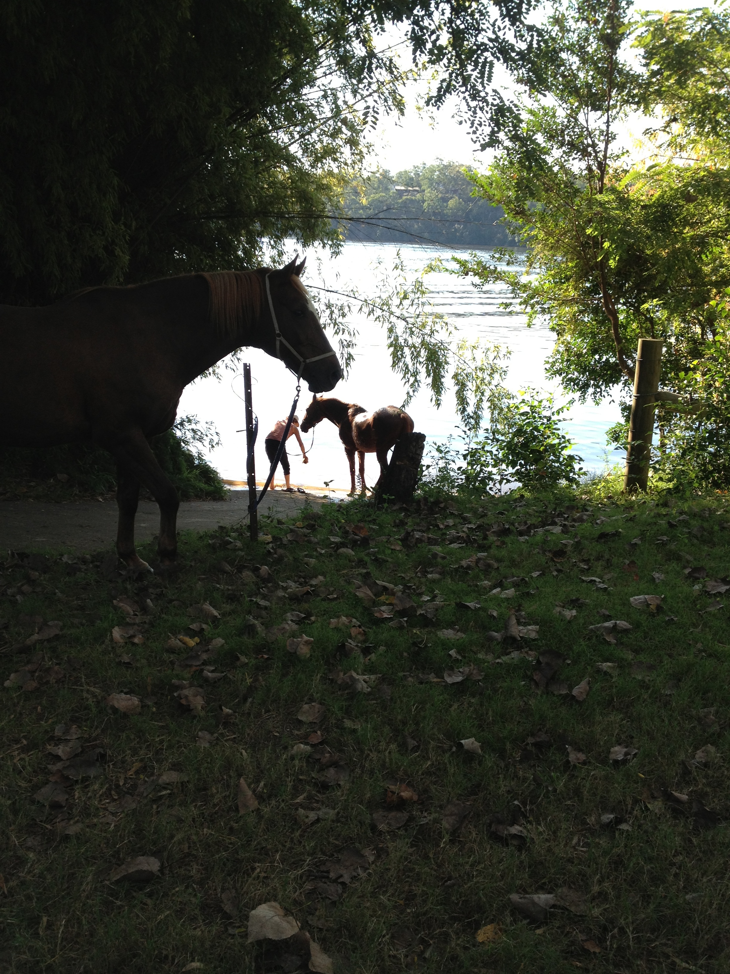 The horse rider was totally unaware that we were having a picnic in the paddock when she came down to the river’s edge to water her horses