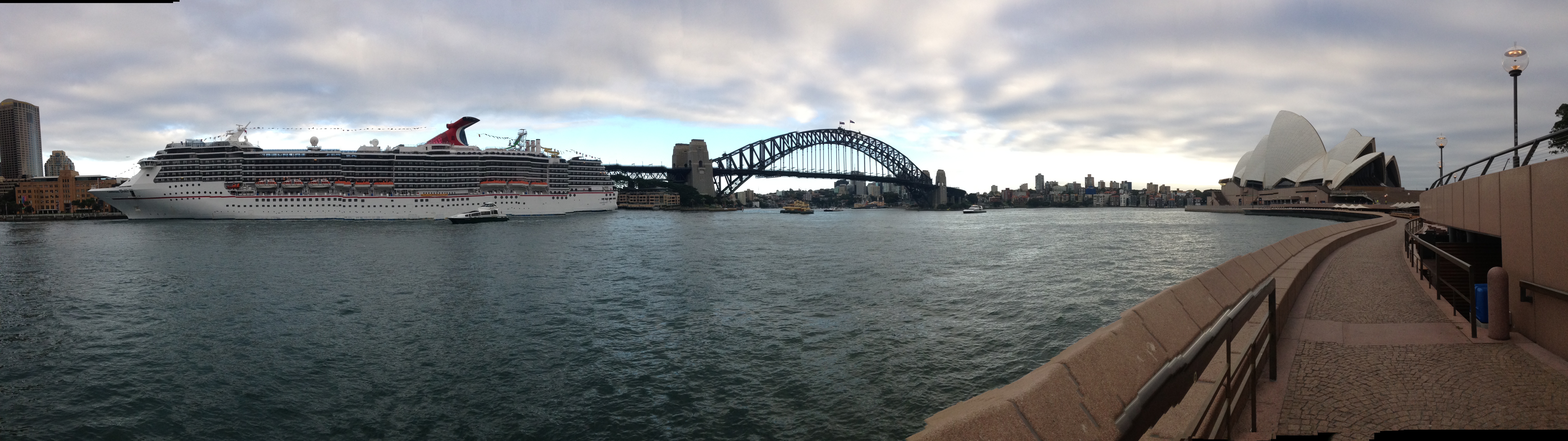 Paula’s theme for this weeks Thursday’s Special couldn’t have come at a better time as I am in Sydney for a conference at the State Library. Early this morning I walked from my hotel room to the opera house and return and this view just called for a panorama shot. It is amazing to me that you can take on the same photo what is in front of you and what is behind you giving a total view of the area. No longer do you have to find a place in-between both sides and with a wide angle lens shoot the lot. Some technology you just have to love.