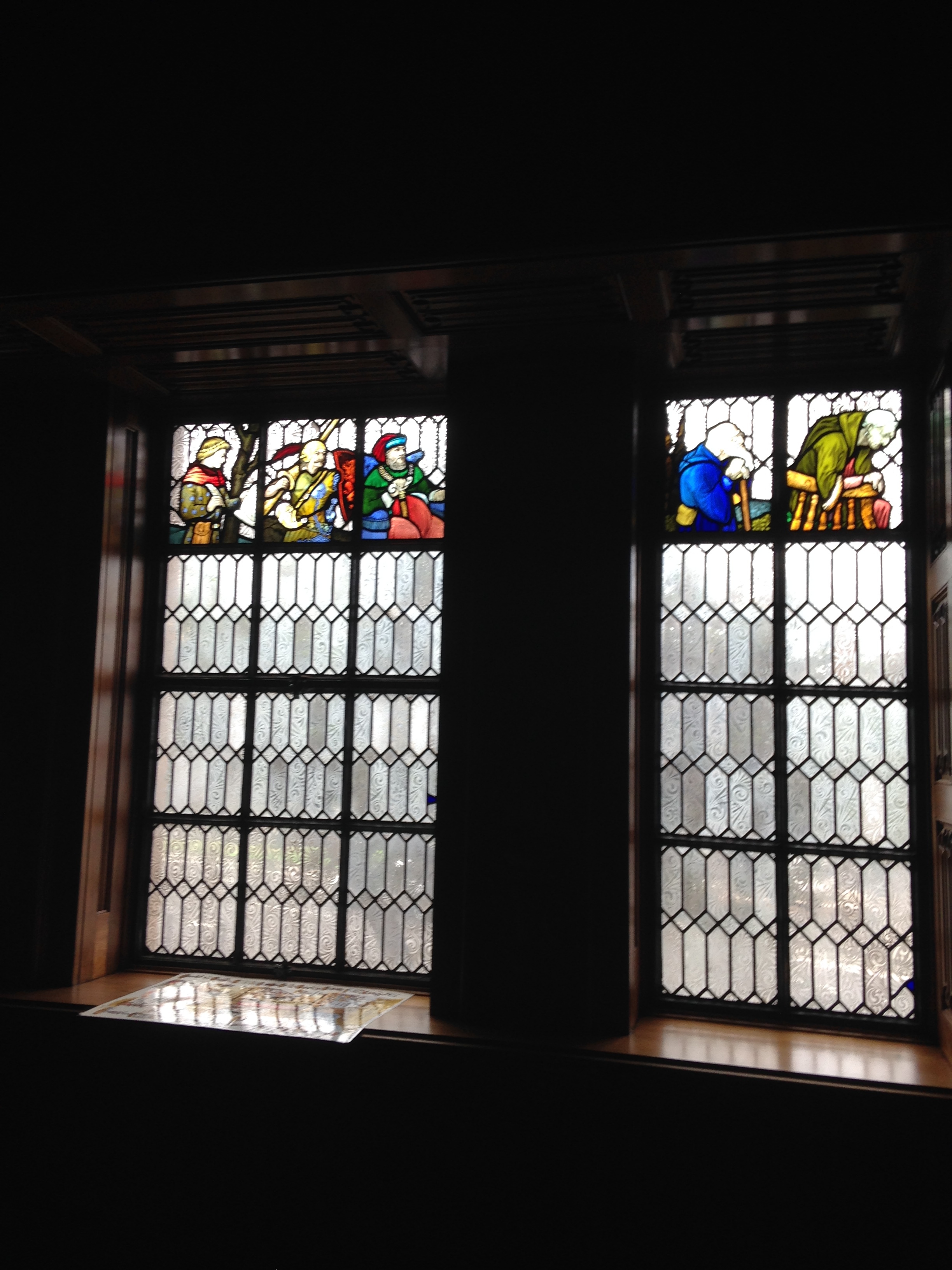The Shakespeare room is a room dedicated to the Bard. The ceiling is modelled on Cardinal Wolsey’s closet ceiling in his quarters at Hampton Court Palace. The room is designed in the Tudor style. The stained glass windows depict the seven ages of man. The library also holds the only copy in Australia of Shakespeare’s First Folio which was published in 1623.