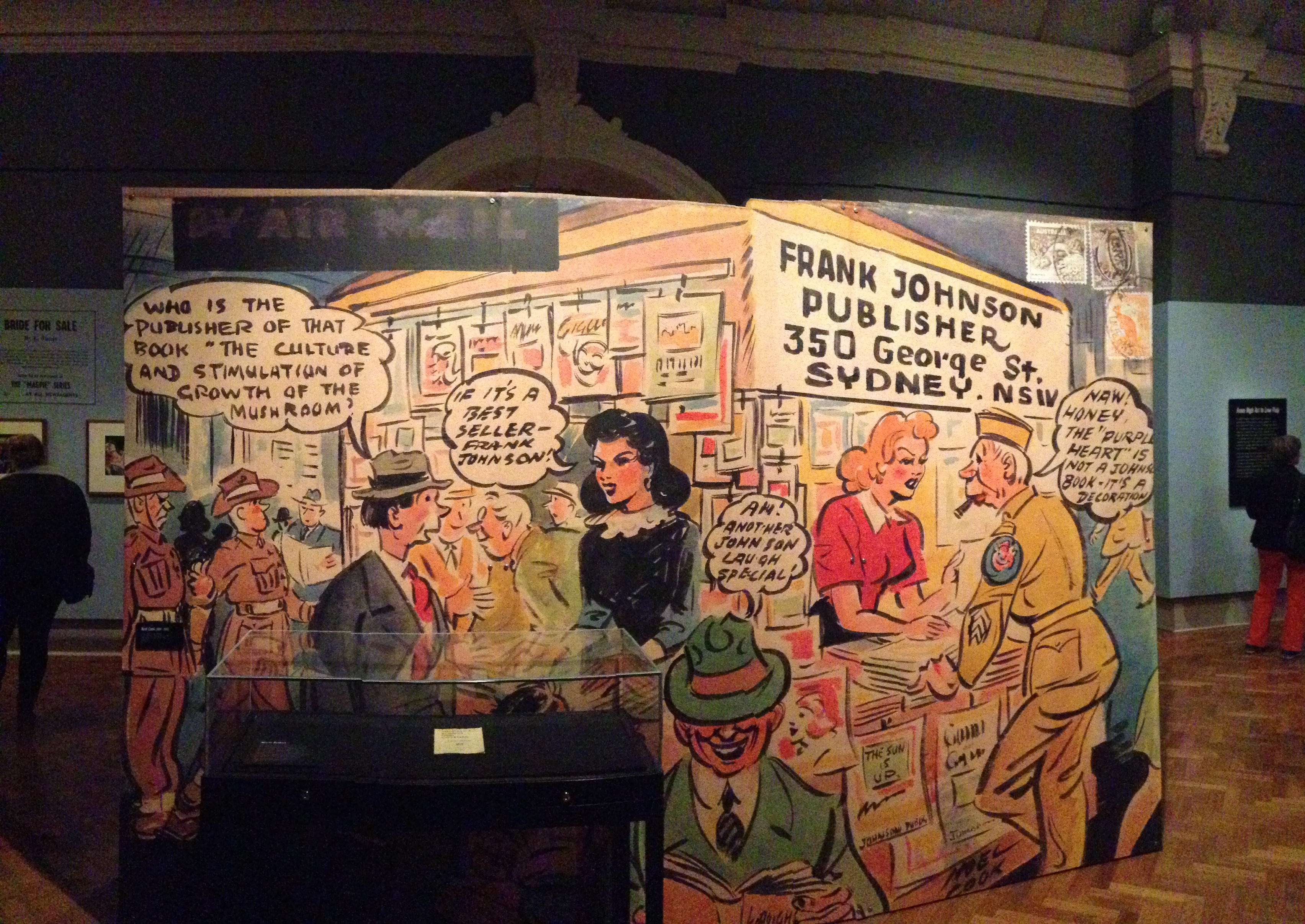 A current exhibition of pulp fiction is a fascinating look into the 40s and 50s in Australia. As a conservative country the import of comics was banned. I now understand why I was not permitted to read comics as children as my parents obviously held the view of the government of the day that the reading of such items was detrimental to the being. A publisher, Frank Johnson, seen above, filled this void with pulp confidential: Quick and Dirty publishing. They included true crime, westerns, romance and our own Aussie brand of comic book.