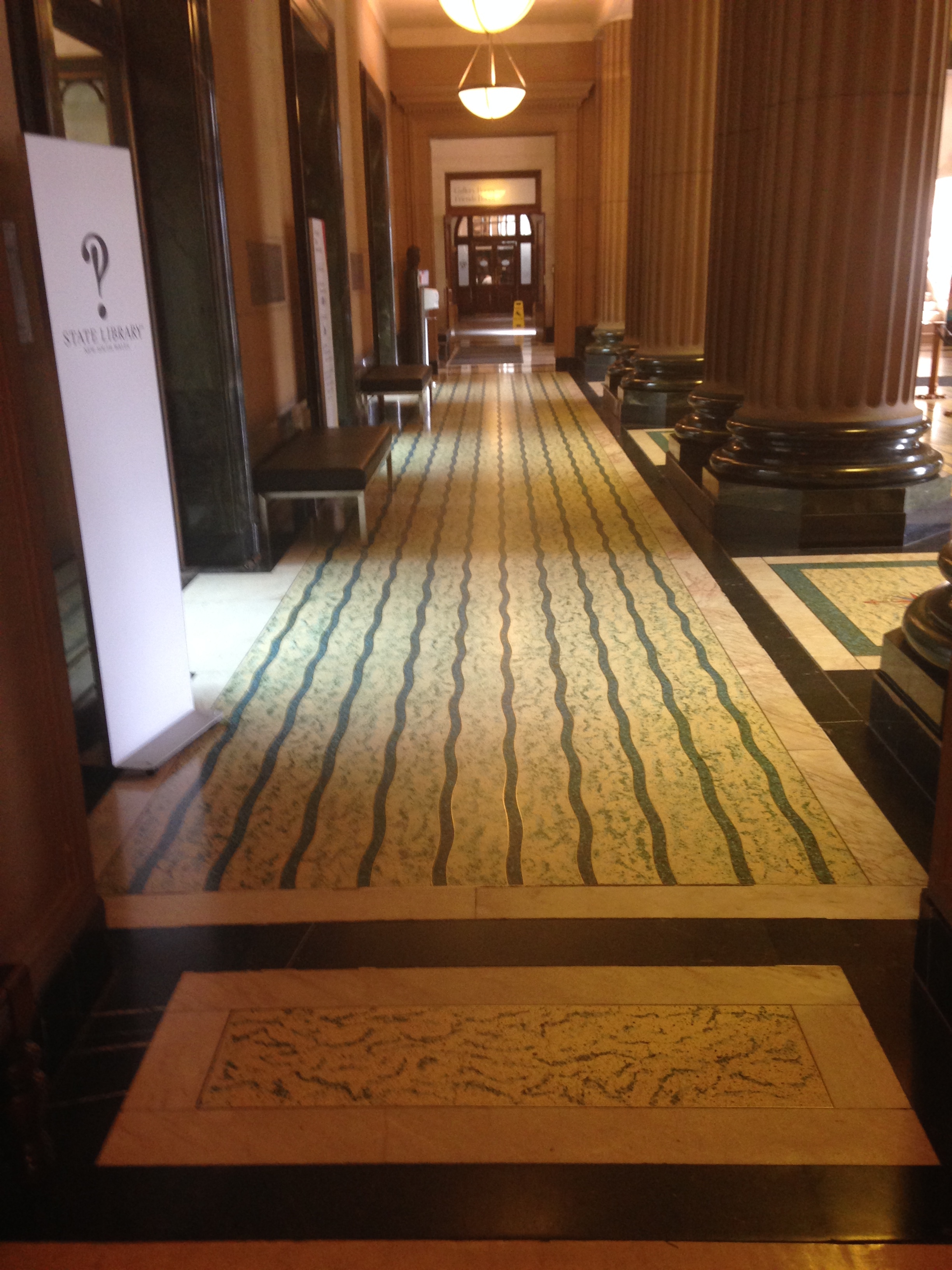 On the floor of the Mitchell vestibule is a marble replica of the Tasman map. This historical document is held by the library, generously donated in 1933 by Princess Marie Boanaparte (grand niece of Napoleon). The replica in marble depicts the discoveries made by Abel Tasman on his two exploratory voyages in 1642 and 1644.
