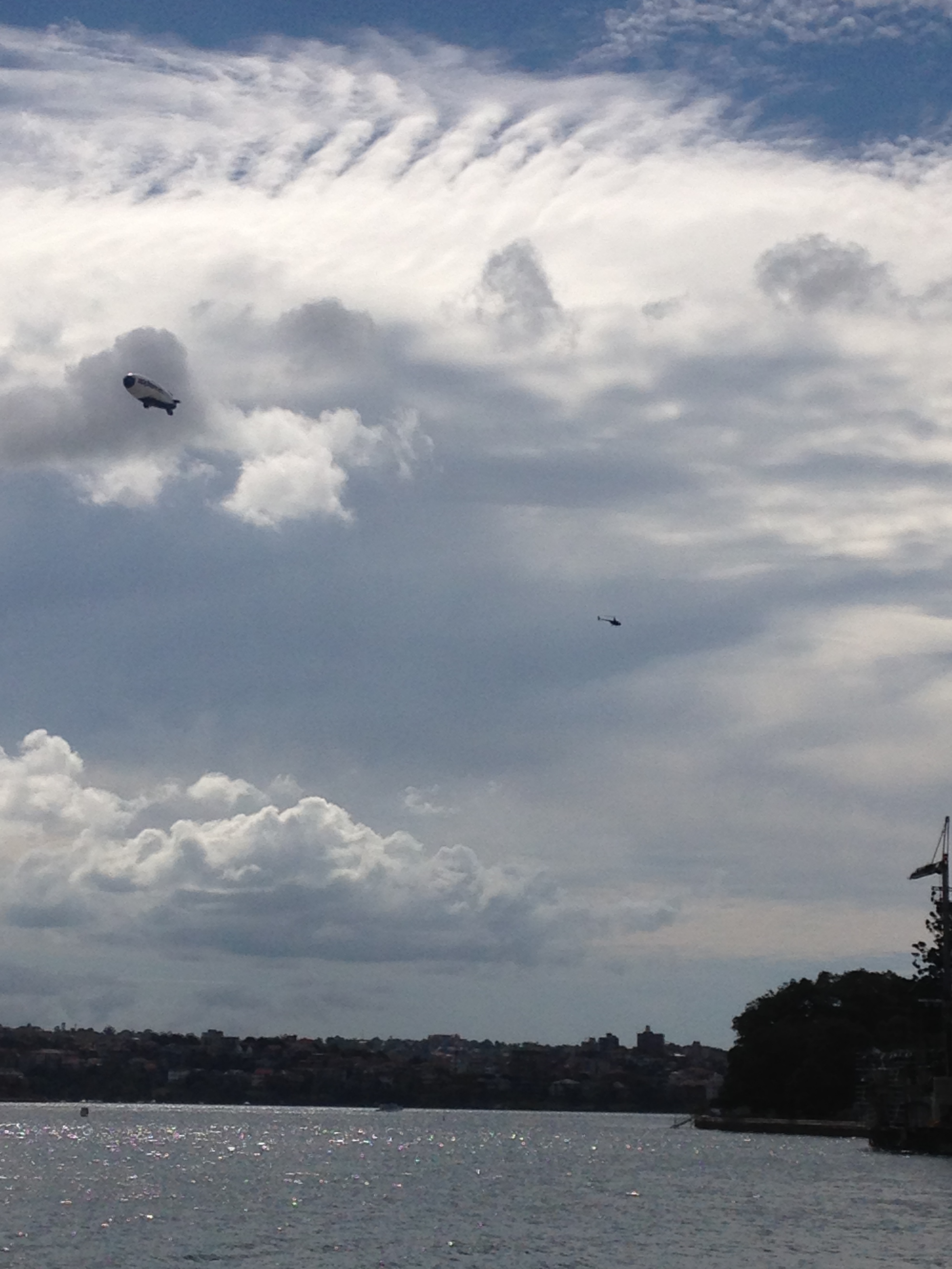 You’ve got a good eye Cee. There are definite disadvantages to the gallery way of displaying. I have now added that photo to the post out of the gallery. Not only was there a blimp but also a helicopter. It was busy up in the clouds that day.