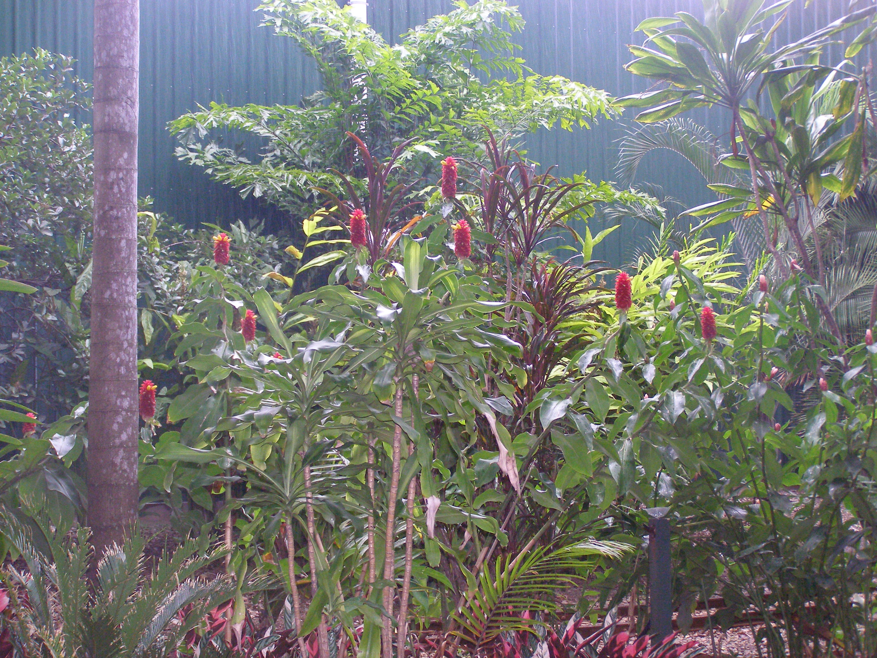 The last two photos are gingers (same as the spice.). Somewhere I read that all ginger is edible. Many people have told me since that only a few are. I’m going with my first knowledge and have just taken the hammer to my ginger plant and got some root for dinner. I agree the Heliconiums (a ginger relative) are stunning.