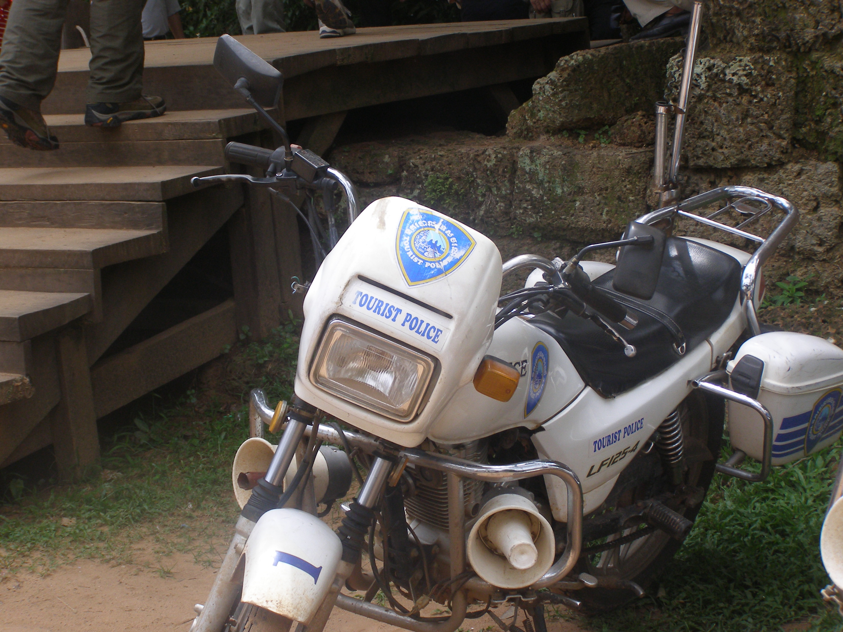 Each photo is a full story, and I like that you combined them. The shot of the motorcycle proclaiming “tourist police” followed by tourists slumped at an ancient site makes me think they don’t get out of line too much. 🙂 I was captivated by the photo where statuary and a young woman were each half-hidden and wearing a similar enchanting smile.