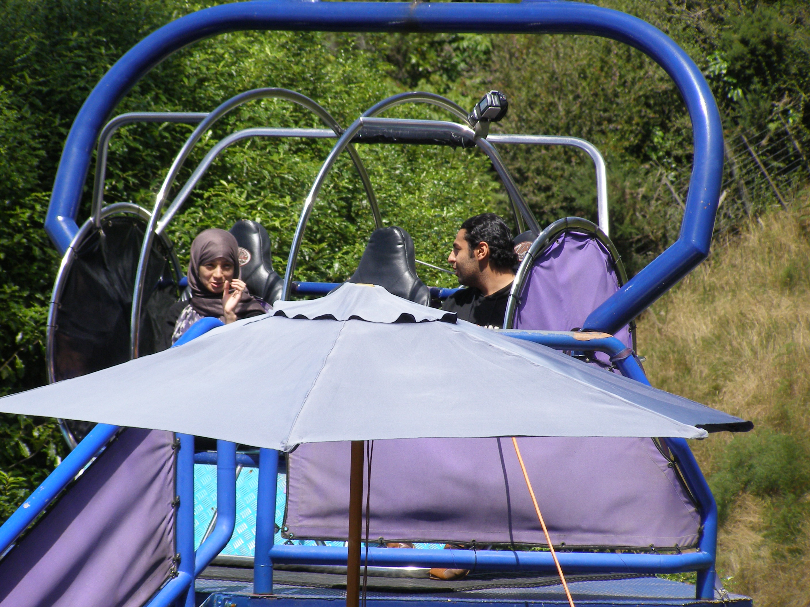 These two were about to become a giant pendulum swinging at great height down the side of the mountain and then into thin air. She was just a tad white when she finally alighted but she had more courage than I did.