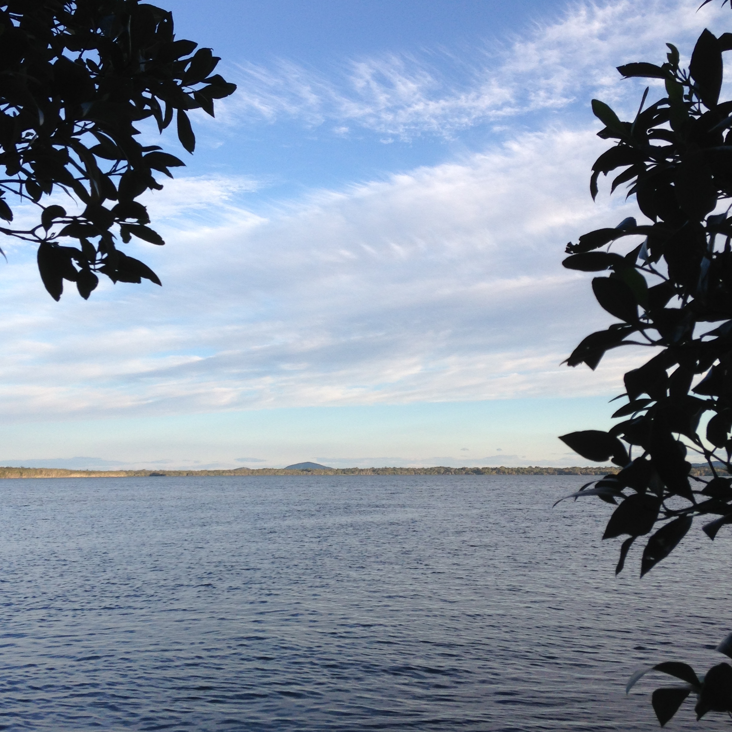 Um – the texture of the clouds reflects that of the water, seen through the leafy frame. Very nice, Irene!