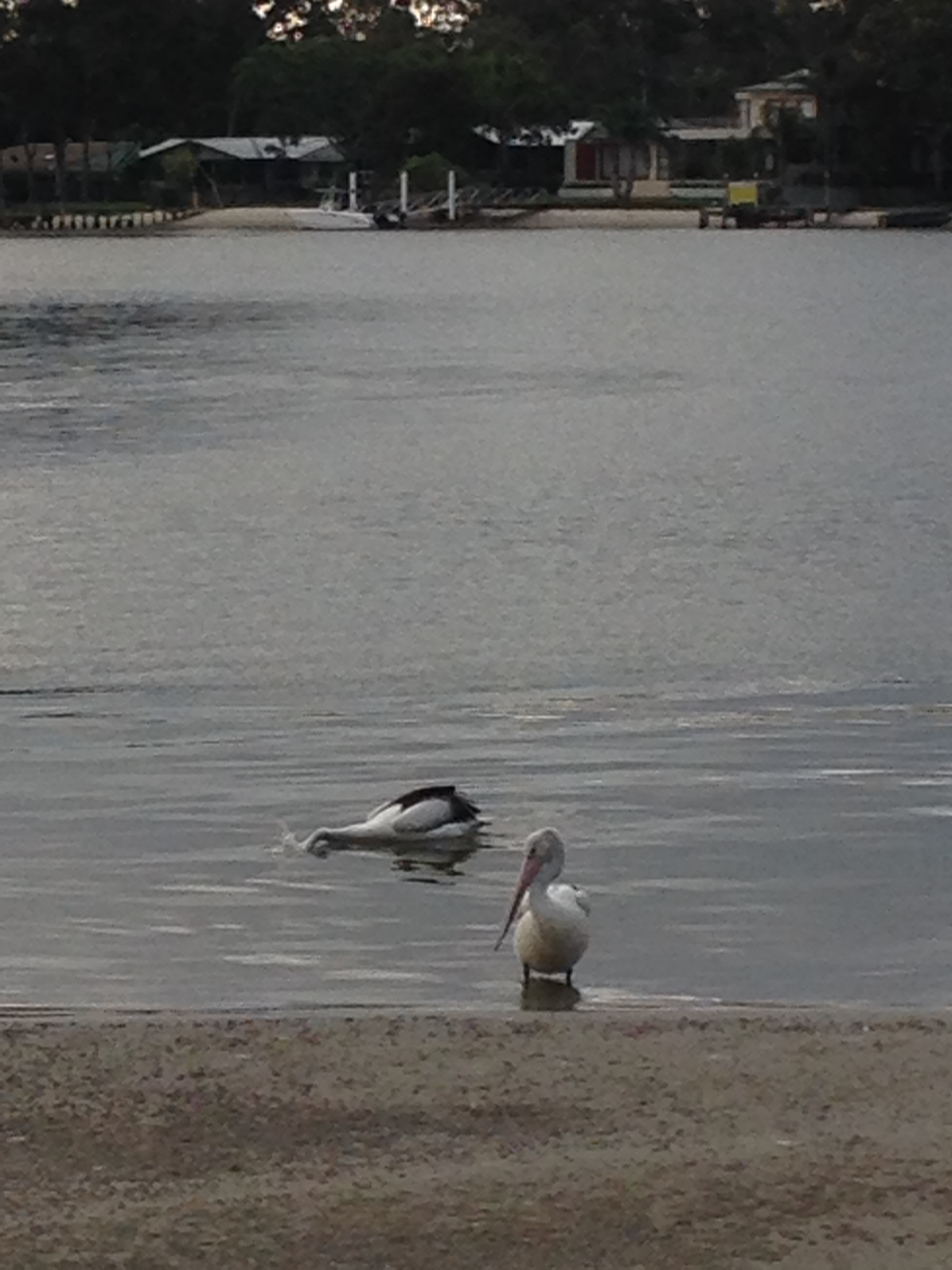 Where they are is actually a marine sanctuary where no fishing is allowed. The pelicans don’t observe the rules and the fish are multiple and huge.