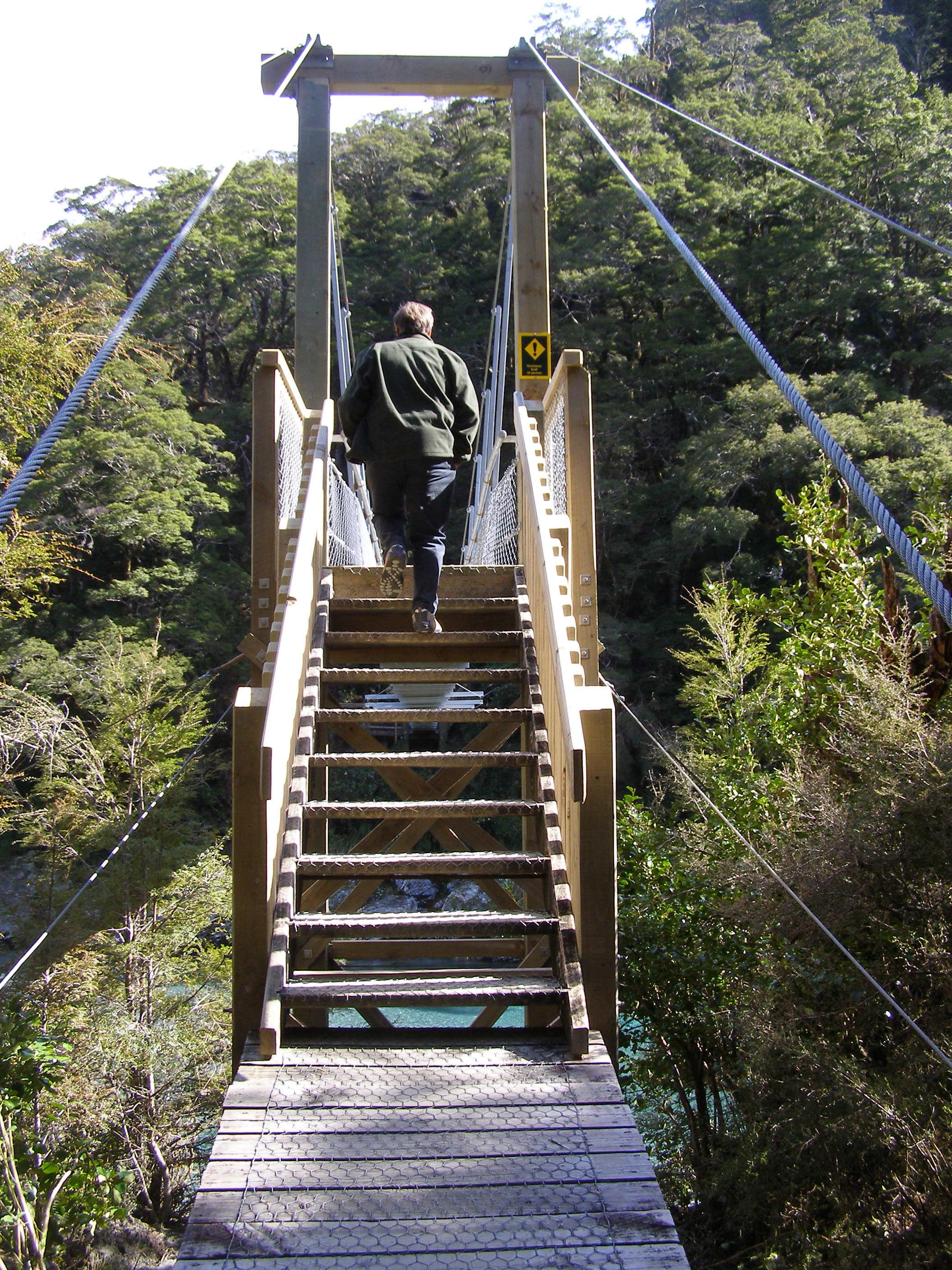 This suspension bridge is connected on either side of the gorge with strong steel wires which we hope stay connected.