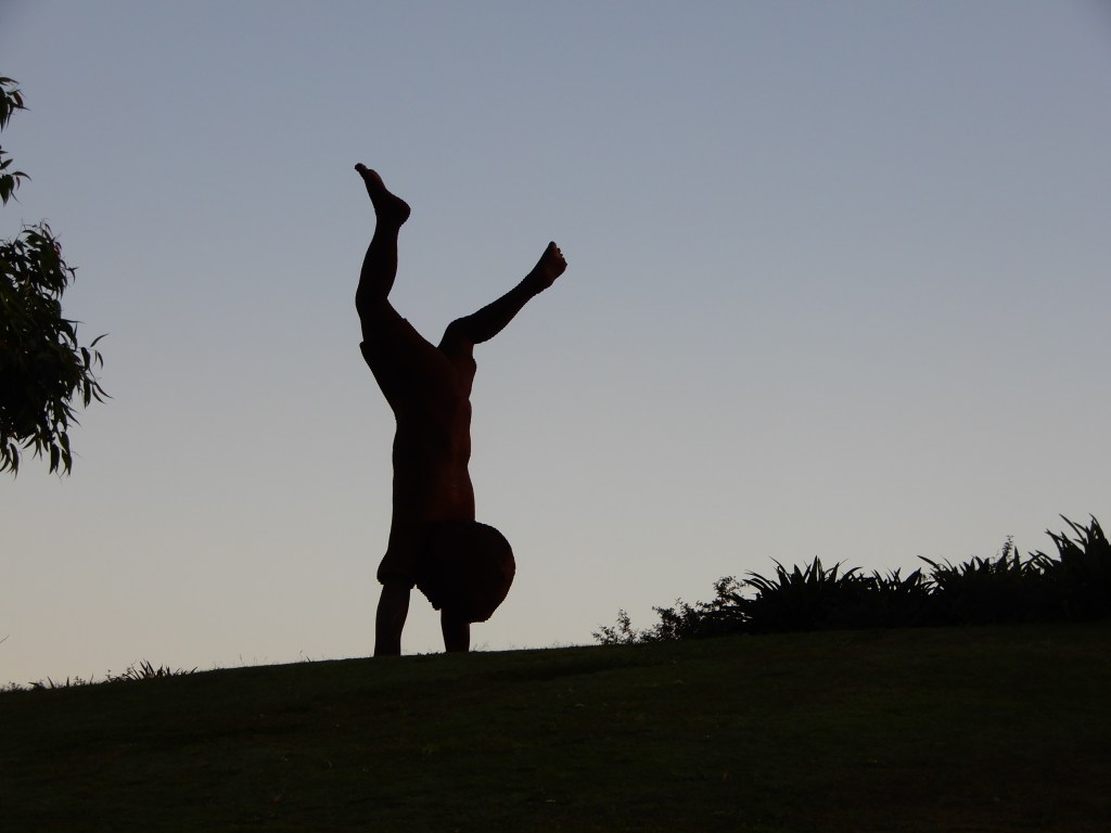 In the dawn light the giant silhouette of the boy doing a handstand stood out in stark relief. I was determined to go for a wander to see him at closer range.