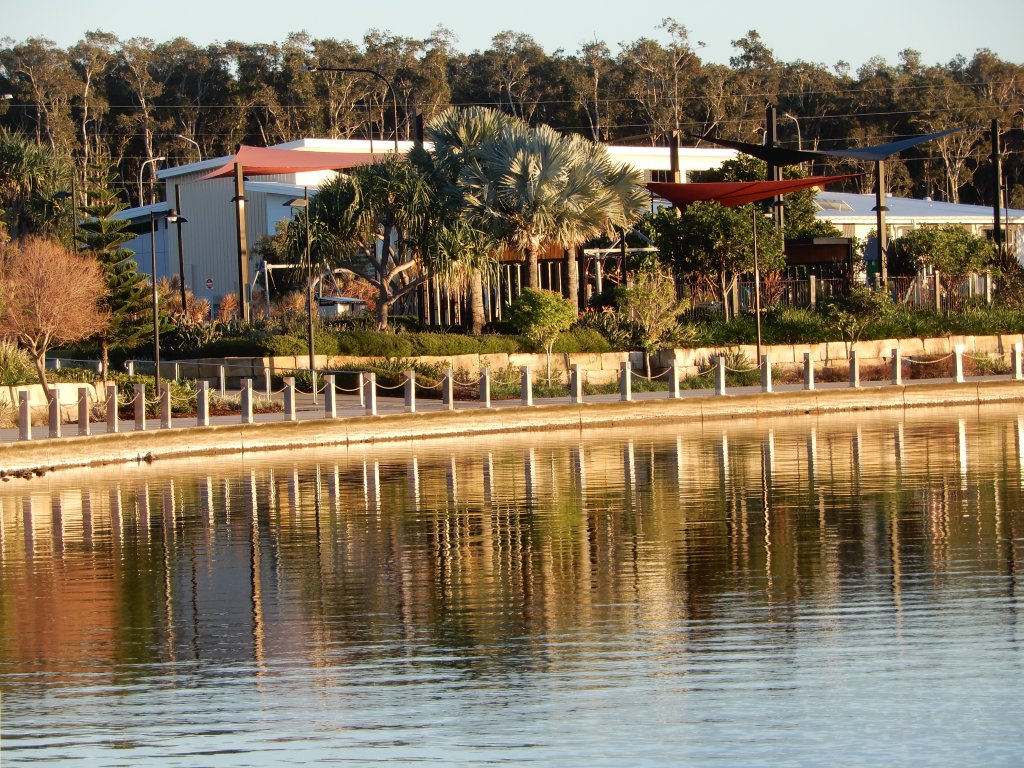 The boy was not the only man made feature. Lake Kawana on whose shores he stood was also a man made feature where people enjoy fishing, kayaking and dragon boat racing. It is also the perfect place for a hospital to be situated giving patients beautiful views and relatives a place to wander while they wait.