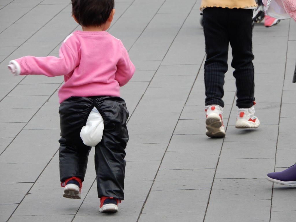 You find yourself in a huge courtyard surrounded by buildings. It wasn’t the buildings that caught my eye however. I was intrigued by the special pants that the toddler wore. It was explained to me that these pants are an aid to toilet training which starts at a very young age.