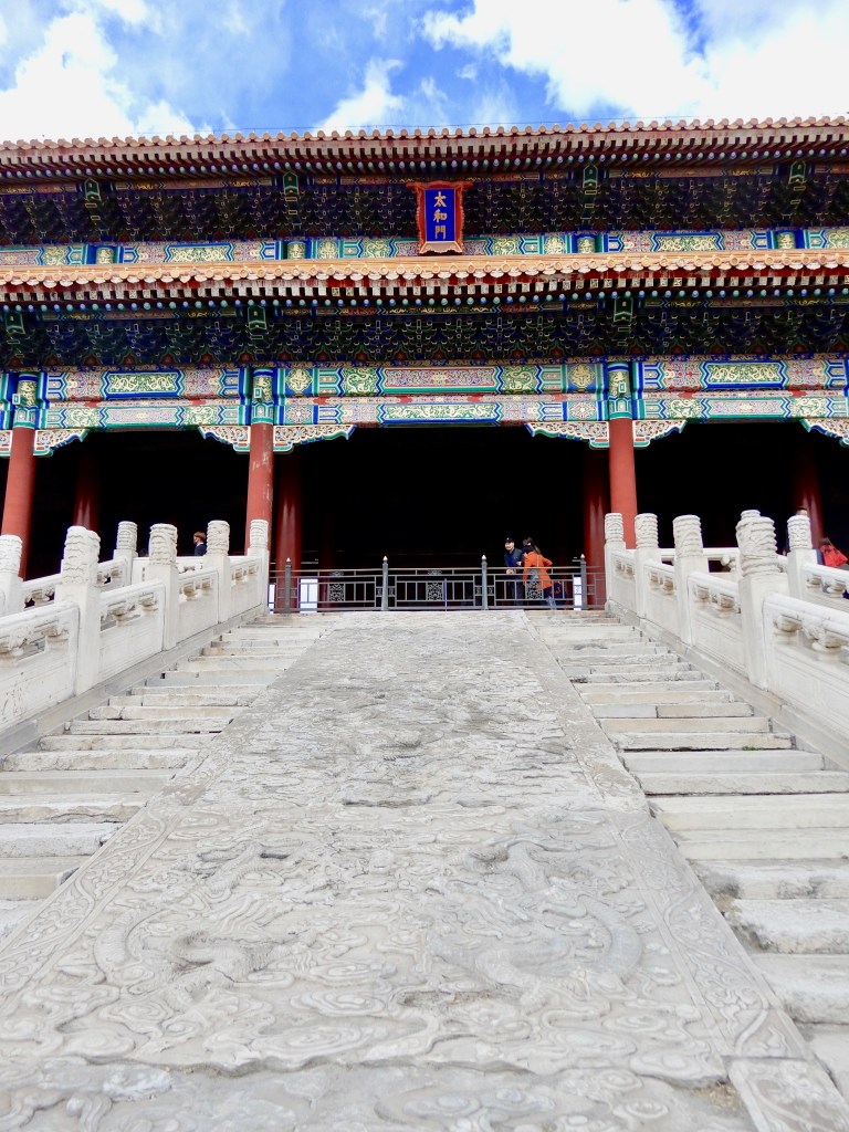 Into yet another courtyard entered from a higher level and leading down into the courtyard was a set of stairs on either side of a ramp, identical to what can be seen on the far side of the courtyard. The ramp was for the litter chair. I can see in times past those seeking an audience with the Emperor would probably crawl from one side to the other and look up to the godly being.