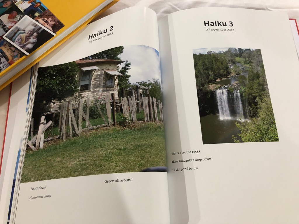Another small problem was formatting. It is essential that each photograph in a gallery is captioned and avoid using the gallery caption. It will appear as an orphan in the book. For poetry the formatting may pose a real problem as for this poem below. The only way to get around this that I can think of is to photograph the poem and put it in as a photo. The formatting you can’t control so where on your blog you might have photo with words under it followed by another photograph the print version may be all paragraphs together and the photos separate to it. These means you need to caption your photos as they will not necessarily be together with the text.
